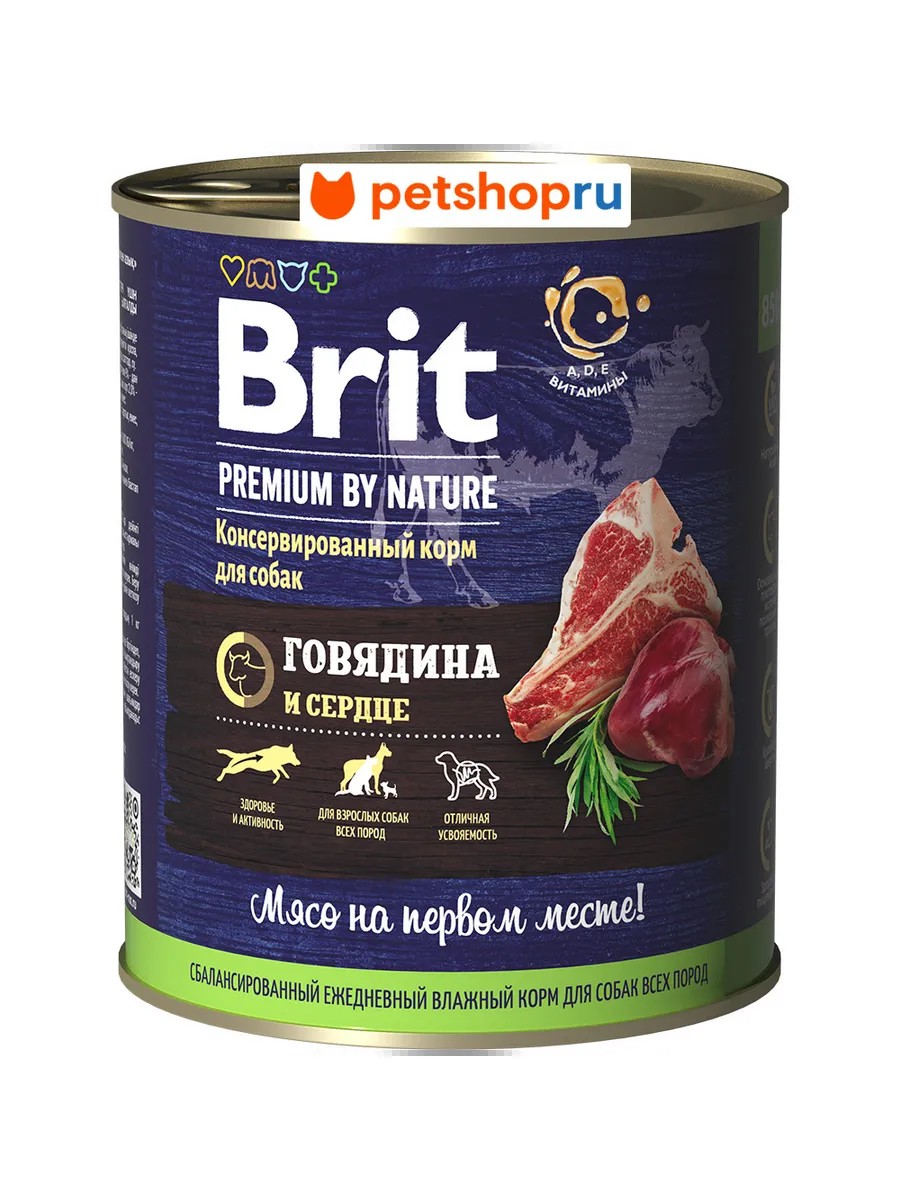 Brit Premium by Nature - полнорационный консервированный корм премиум класса говядина и сердце для взрослых собак всех пород.