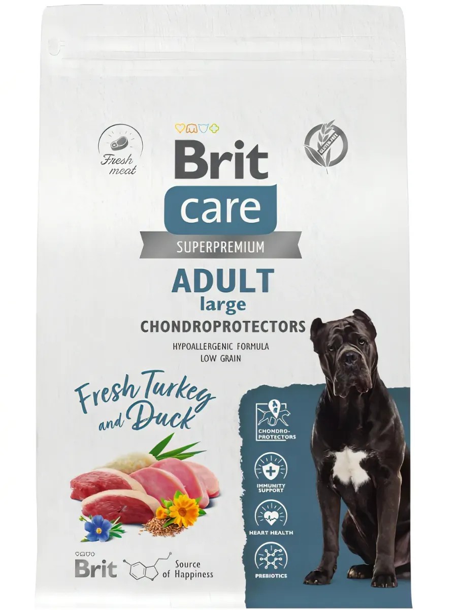 | Полное наименование товара | BRIT CARE, Сухой корм с инд. и уткой д/соб.круп.пор. "Dog Adult Large Chondroprotectors",3кг. |