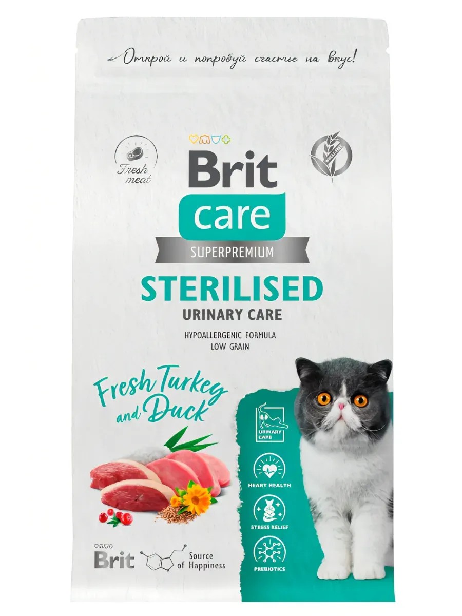 | Full product name | BRIT CARE, Dry food with turkey and duck for sterile cats "Cat Sterilised Urinary Care", 1.5 kg. |