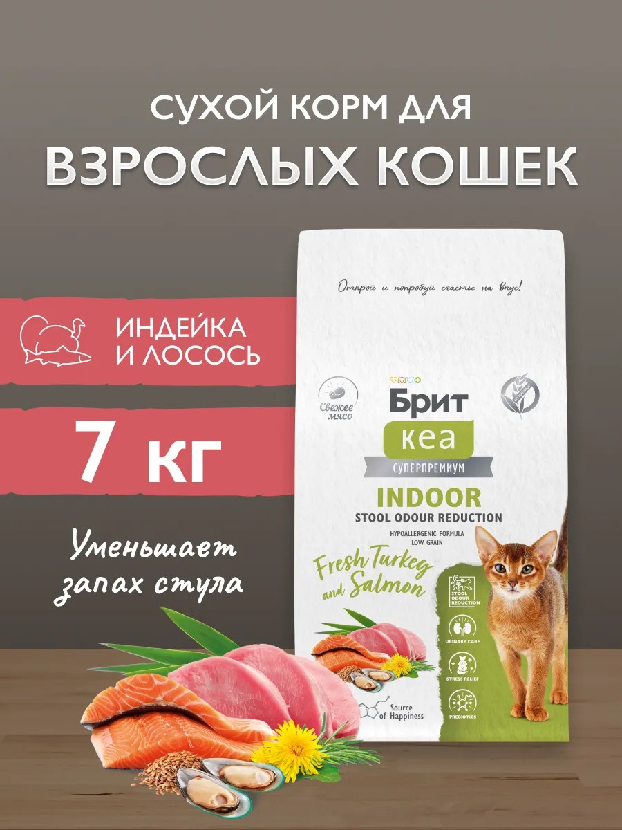 Полнорационный сухой корм суперпремиум-класса с индейкой и лососем для взрослых домашних кошек. Уменьшение запаха стула.
