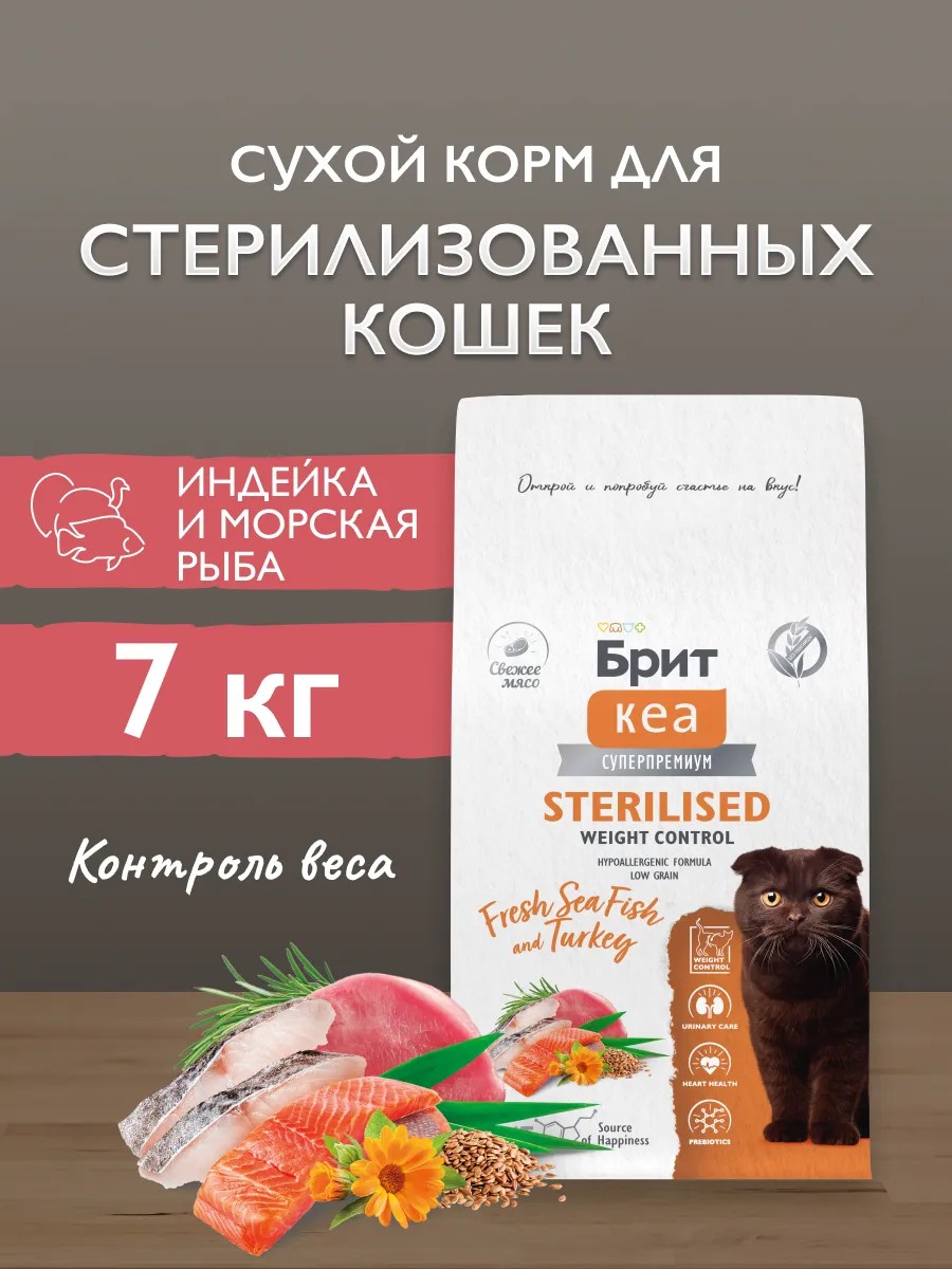Полнорационный сухой корм суперпремиум-класса с морской рыбой и индейкой для стерилизованных кошек. Контроль веса.