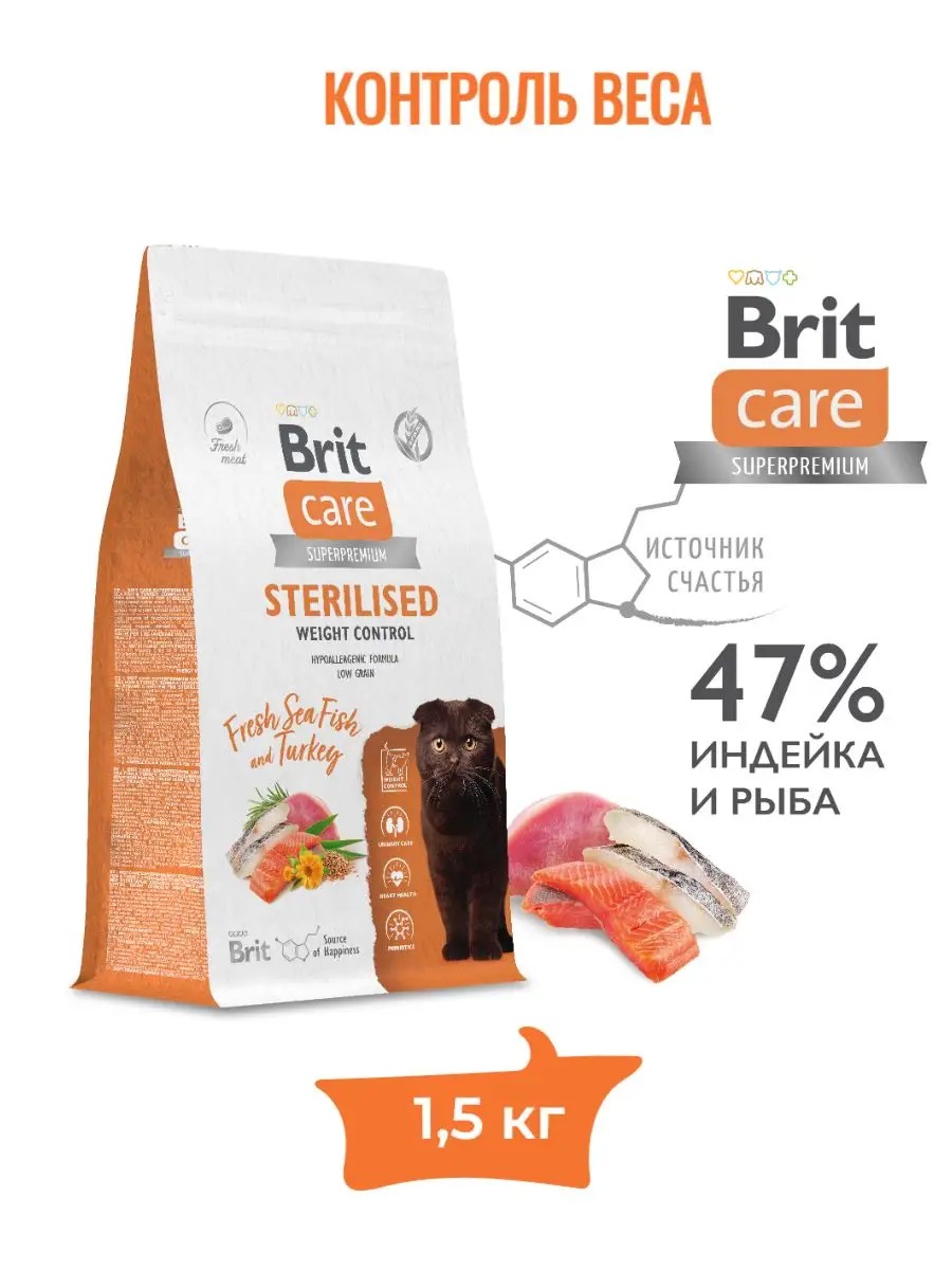 Brit Care Корм сухой Cat Sterilised Weight Control 1,5кг