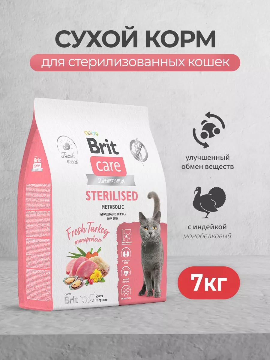 Сухой корм Брит Кеа с индейкой для стерилизованных кошек разработан специально для поддержания здоровья питомцев после стерилизации. Его монопротеиновая формула на основе индейки помогает контролировать вес и поддерживать метаболизм на оптимальном уровне, что особенно важно для стерилизованных кошек.