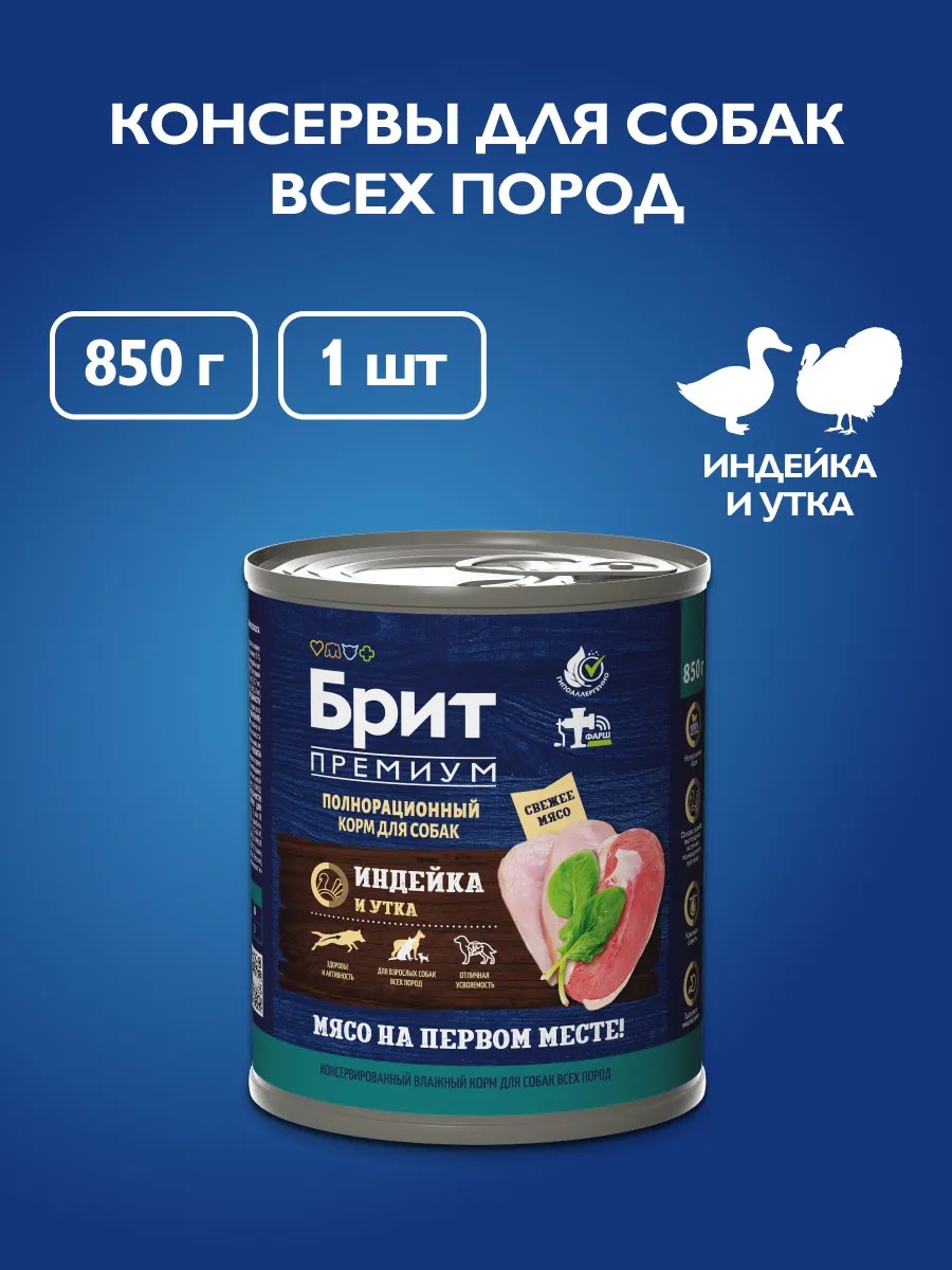 Brit Корм для собак влажный, индейка и утка 850 г