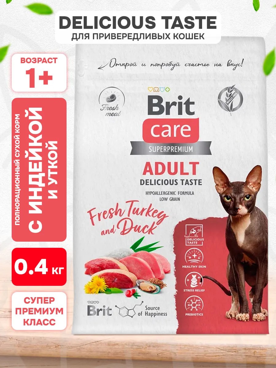 Brit Корм сухой Care привередливых кошек индейка утка 0,4 кг