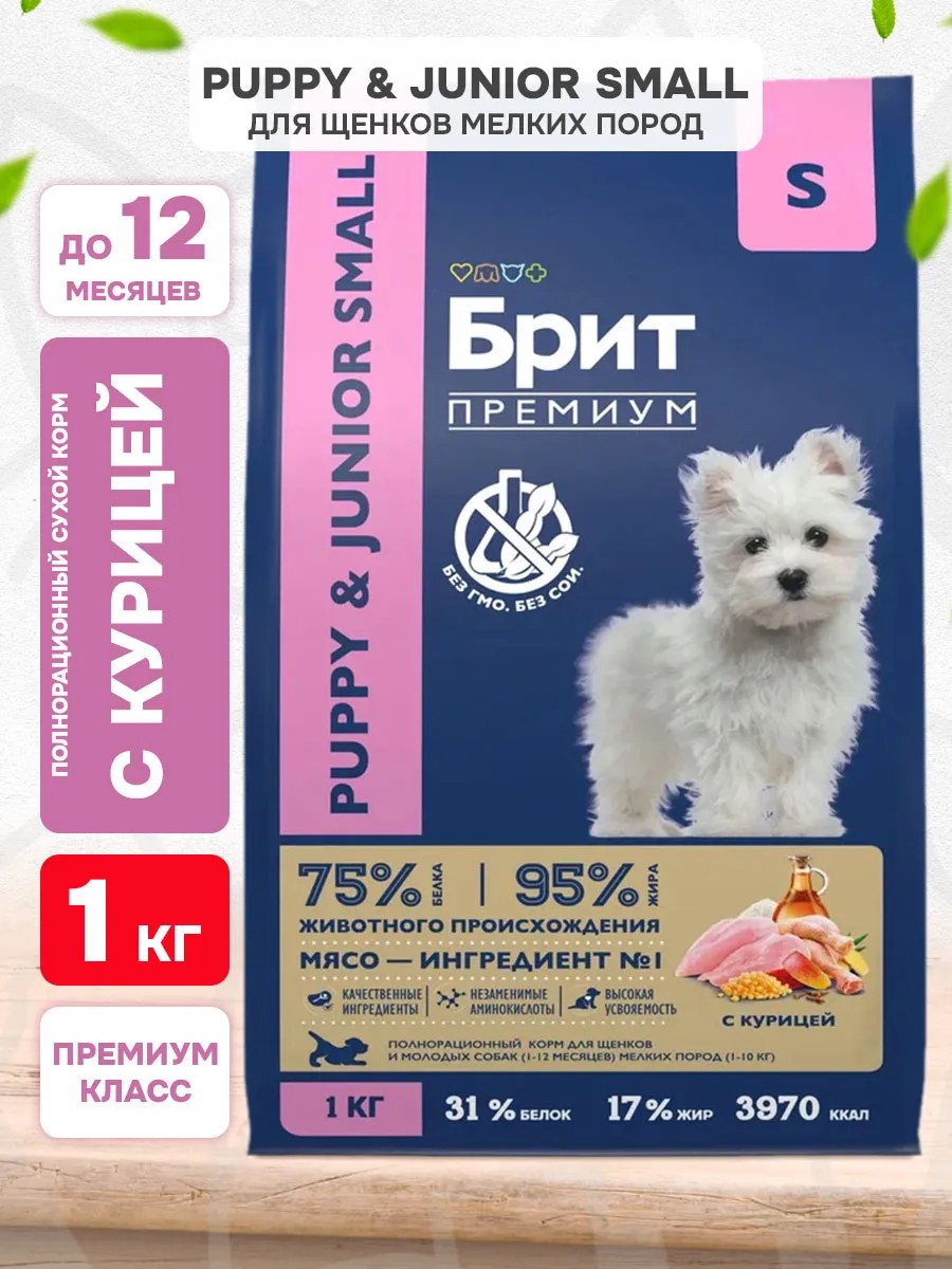Brit Корм сухой Premium для мелких щенков собак курица 1 кг