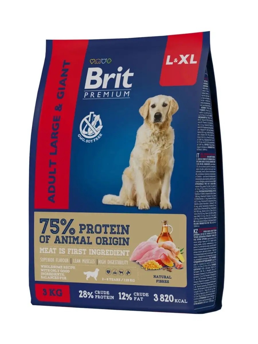Полнорационный сухой корм Brit Premium Adult Large+XL с курицей для взрослых собак крупных пород и гигантских пород