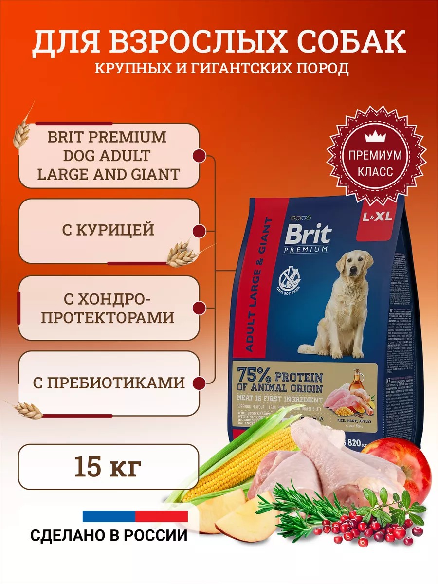 "Brit Premium" — это не просто собачий корм, это забота о вашем питомце! Ваша собака заслуживает только лучшего, и этот корм станет отличным выбором для их здоровья и активности. Выбирайте "Brit Premium Dog Adult Large and Giant" — идеальный сухой корм для собак крупных пород, который сделает жизнь вашего любимца более полноценной и счастливой! Корм и лакомства, а также товары для собак — ваш самый лучший выбор!