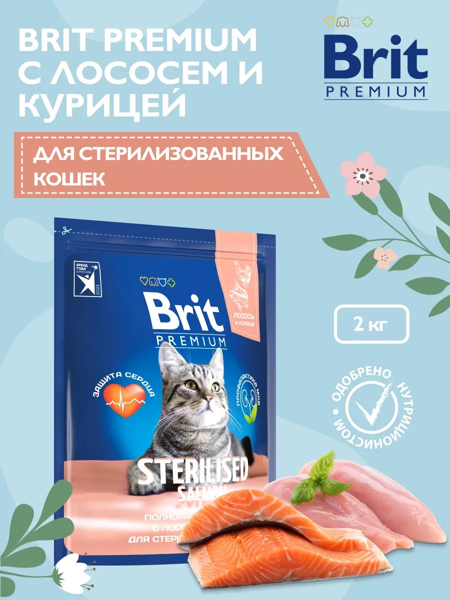 Brit Корм сухой для стерилизованных кошек Лосось и курица 2 кг