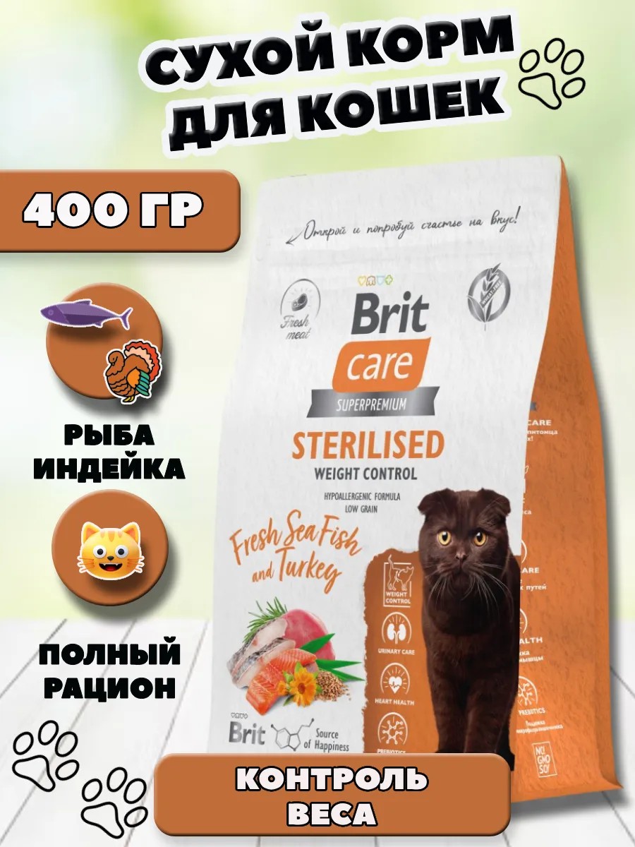 Brit Сухой корм для стерилизованных кошек контроль веса 400г