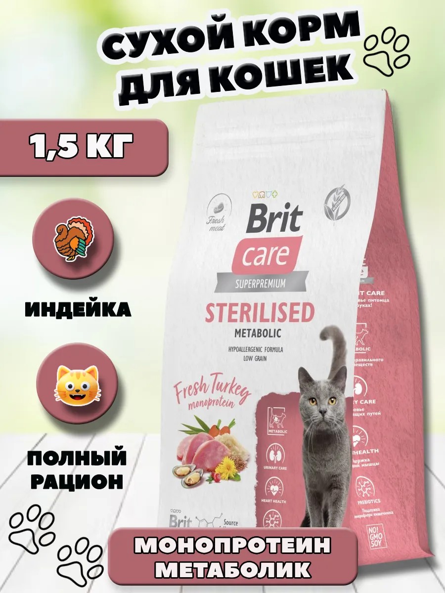 Brit Сухой корм для стерилизованных кошек с индейкой 1,5 кг