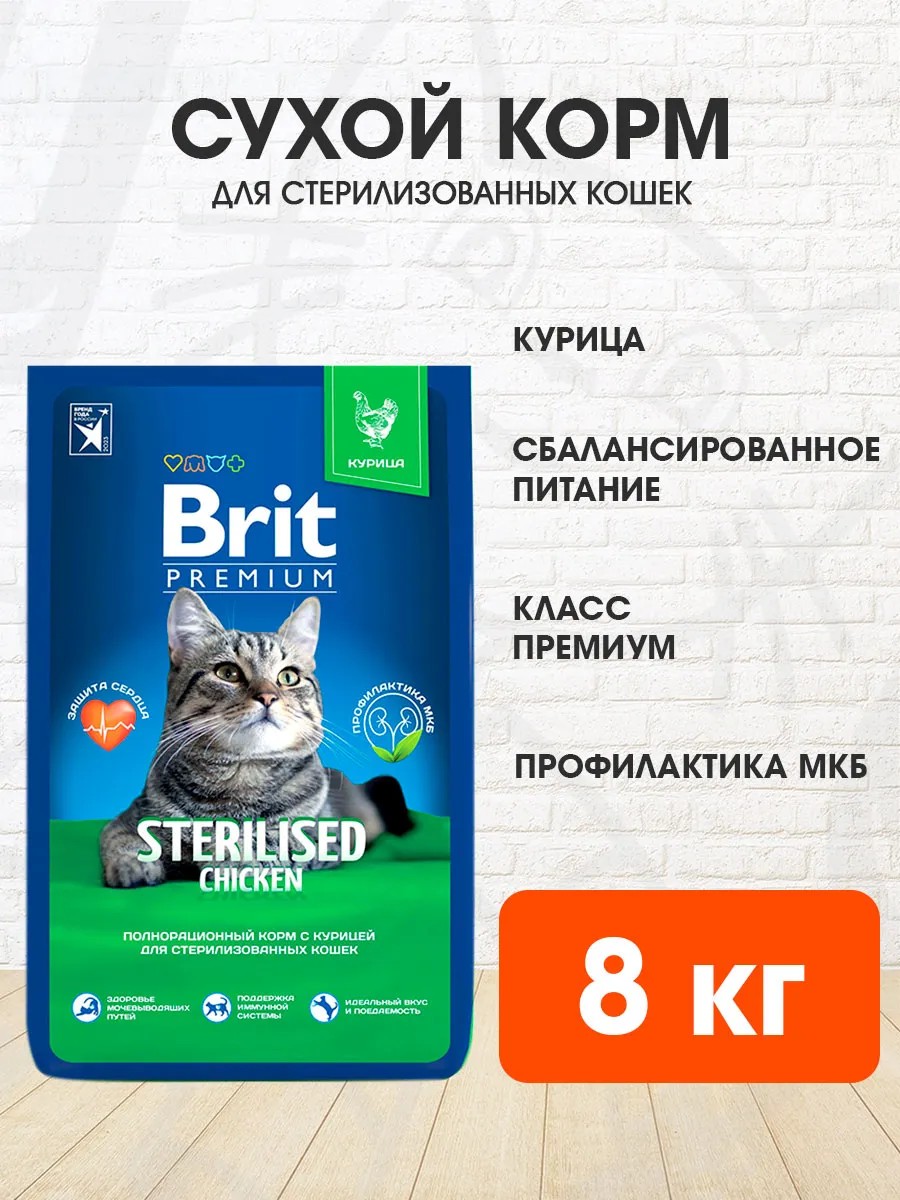 Brit Корм для кошек сухой Premium для стерилизованных курица 8кг