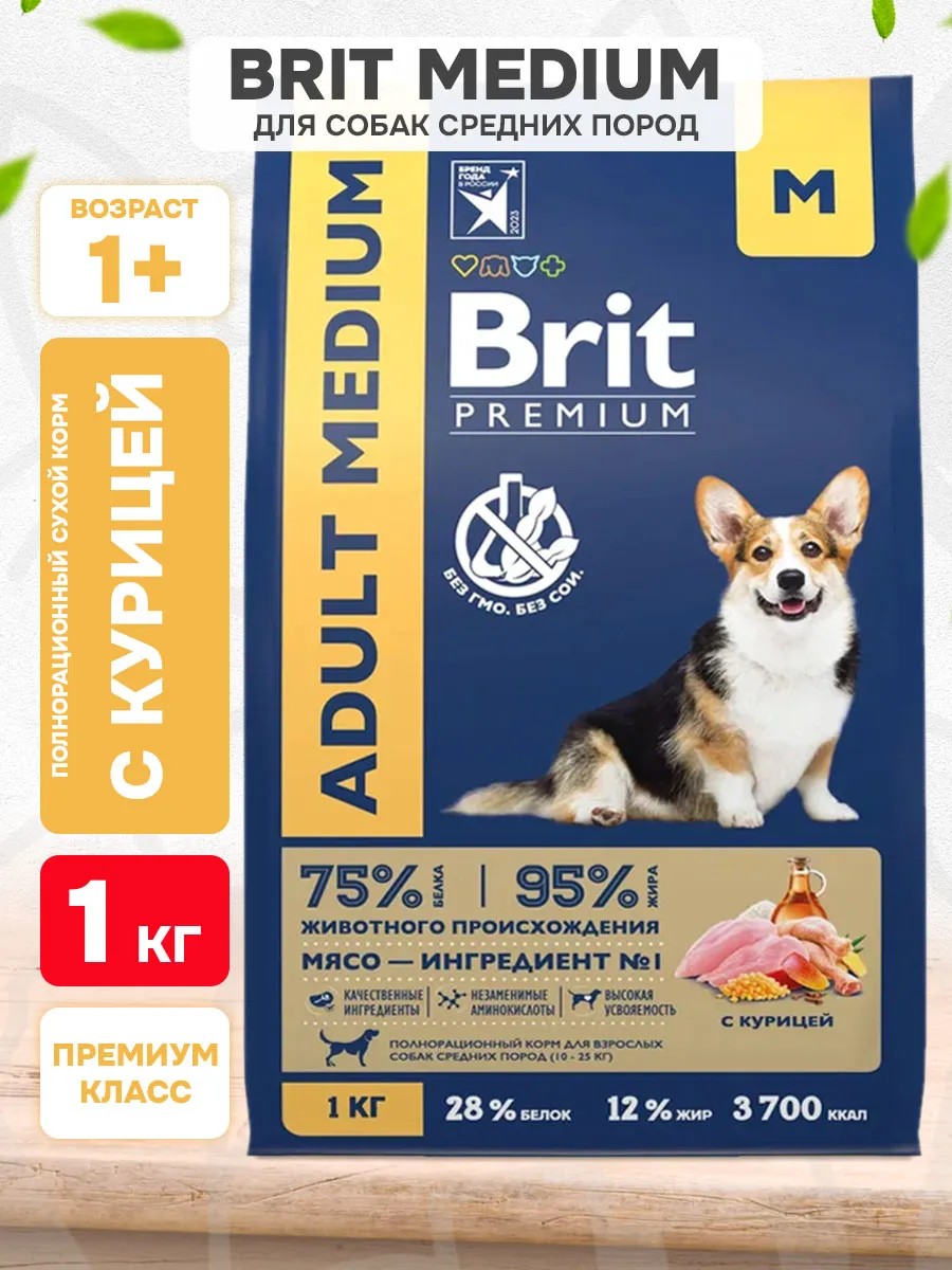 Brit Корм сухой Premium для средних собак курица 1 кг