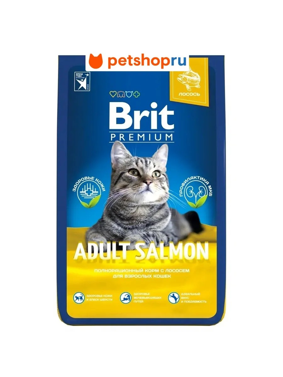 Dry food bBrit Premium/b with salmon is intended for adult cats of all breeds.