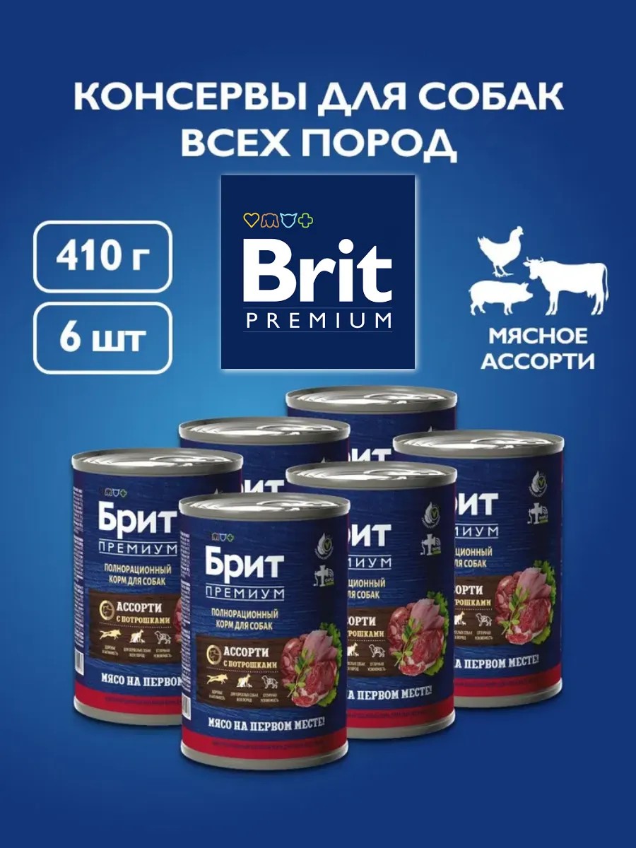 BRIT PREMIUM Корм для собак ассорти с потрошками 410гх6шт
