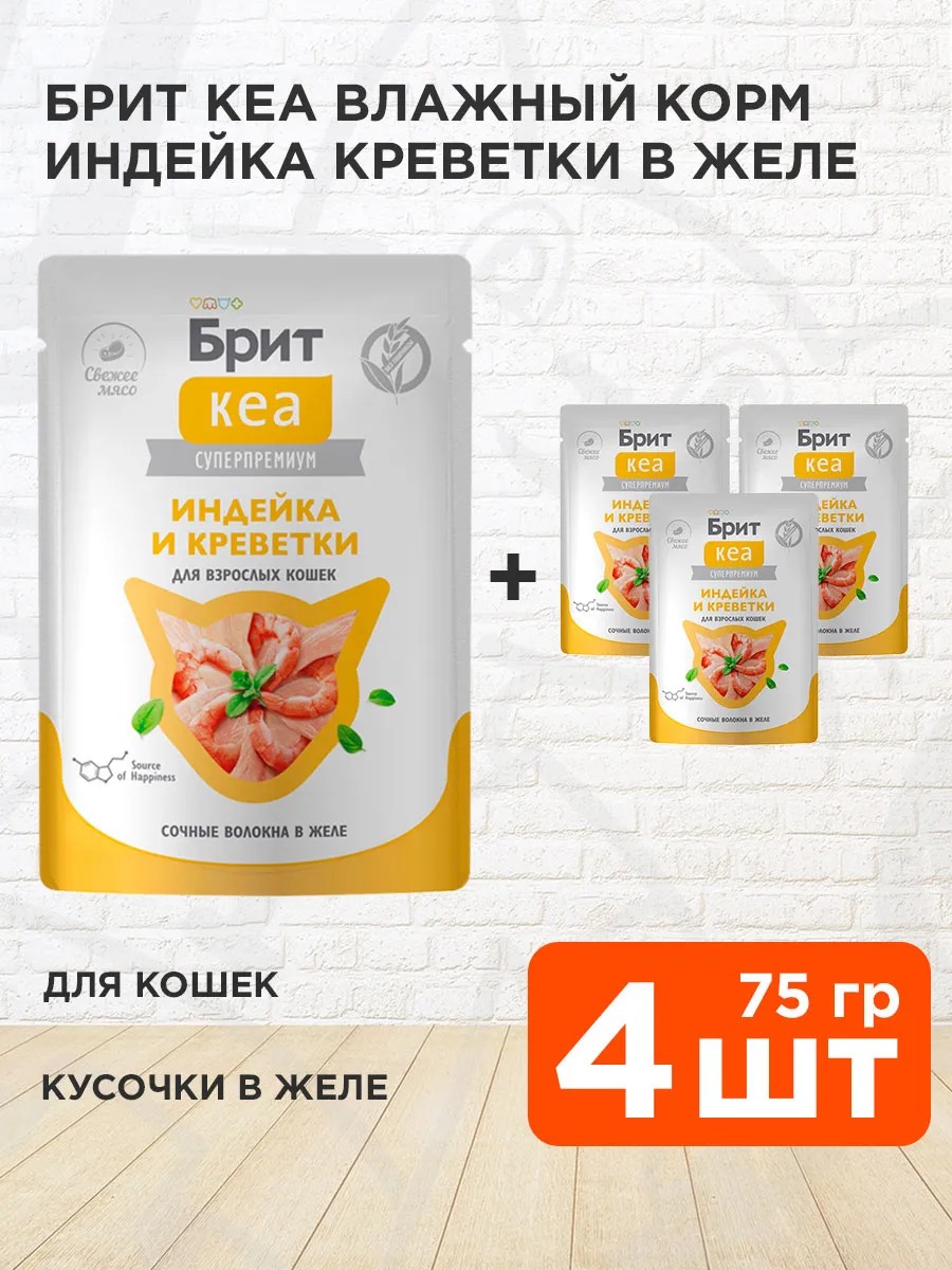 Вся линейка паучей и ламиcтеров Брит Кеа "Волокна в желе" построена на индейке как основном белке, с добавками разных морепродуктов. Это уникальная фишка линейки — моно-белковый состав на базе индейки + сочные волокна и желе, обогащенные спирулиной и таурином, создающие функциональное лакомство для взрослых кошек и котят.