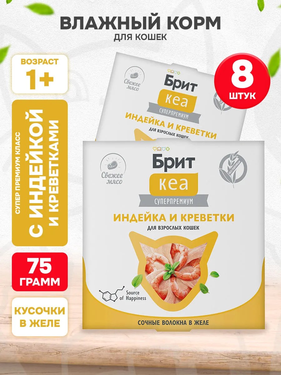 Brit Корм влажный Кеа для кошек индейка креветки 75 г 8 шт