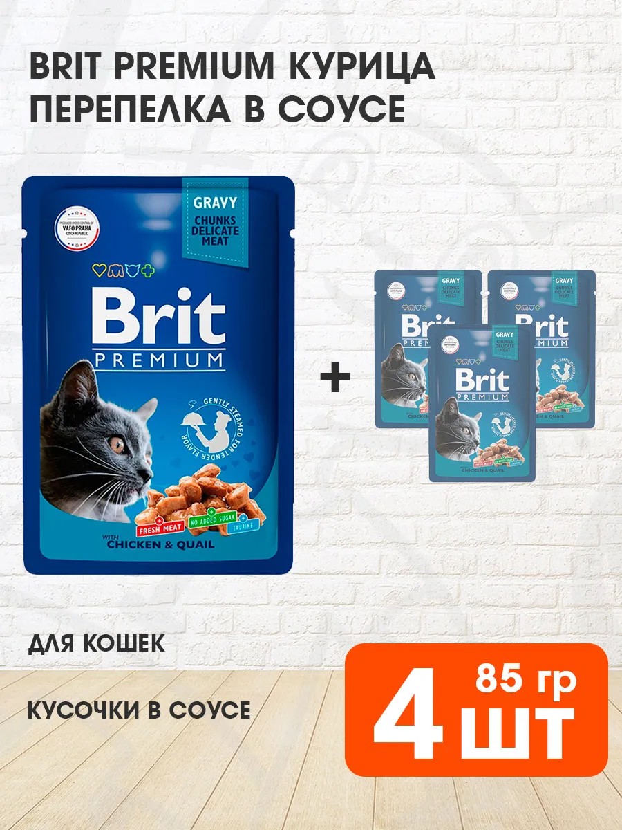 Brit Корм влажный Premium для кошек курица перепелка 85 г 4 шт