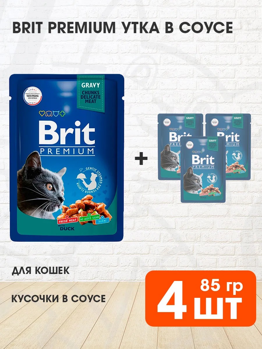 Brit Корм влажный Premium для кошек утка в соусе 85 г 4 шт