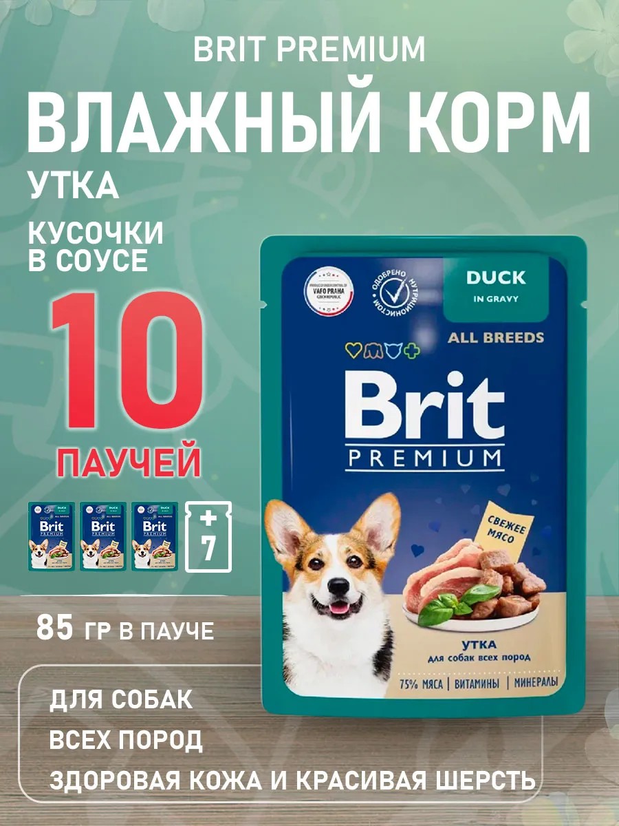 Brit Корм для собак влажный Premium утка в соусе 85 г 10 шт