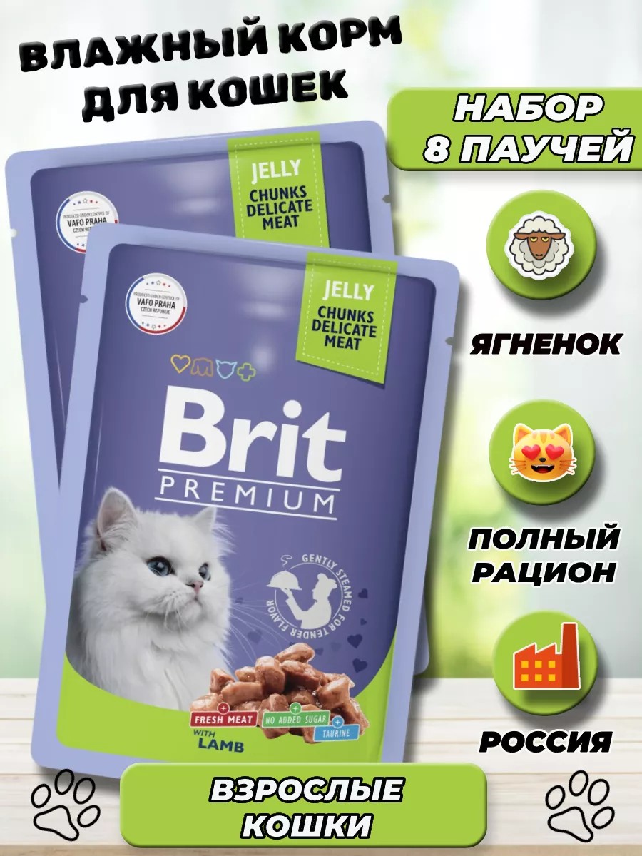 Brit Влажный корм для кошек с ягненком в желе 8 шт