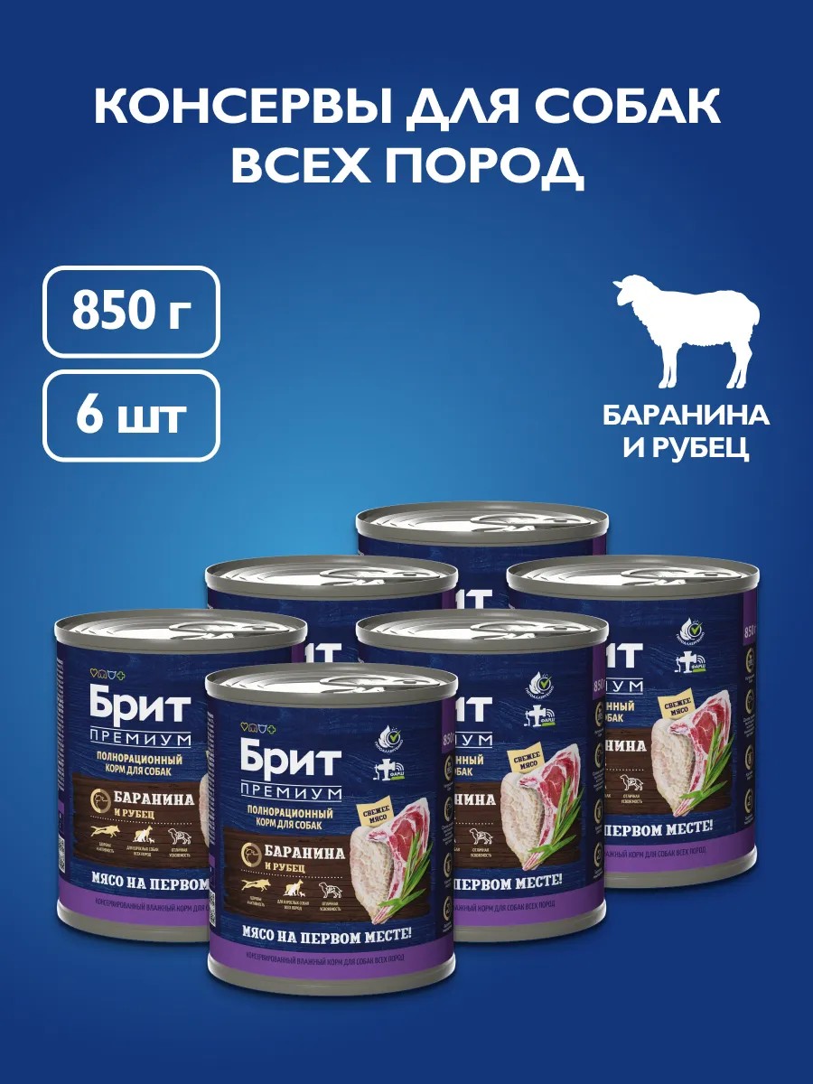 Brit Корм для собак влажный, баранина и рубец 6 шт х 850 г