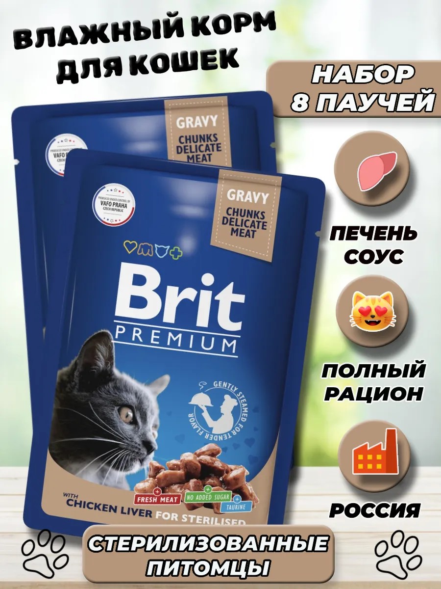 Brit Влажный корм для стерилизованных кошек печень в соусе 8 шт
