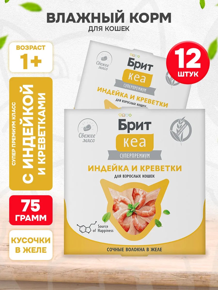 Brit Корм влажный Кеа для кошек индейка креветки 75 г 12 шт