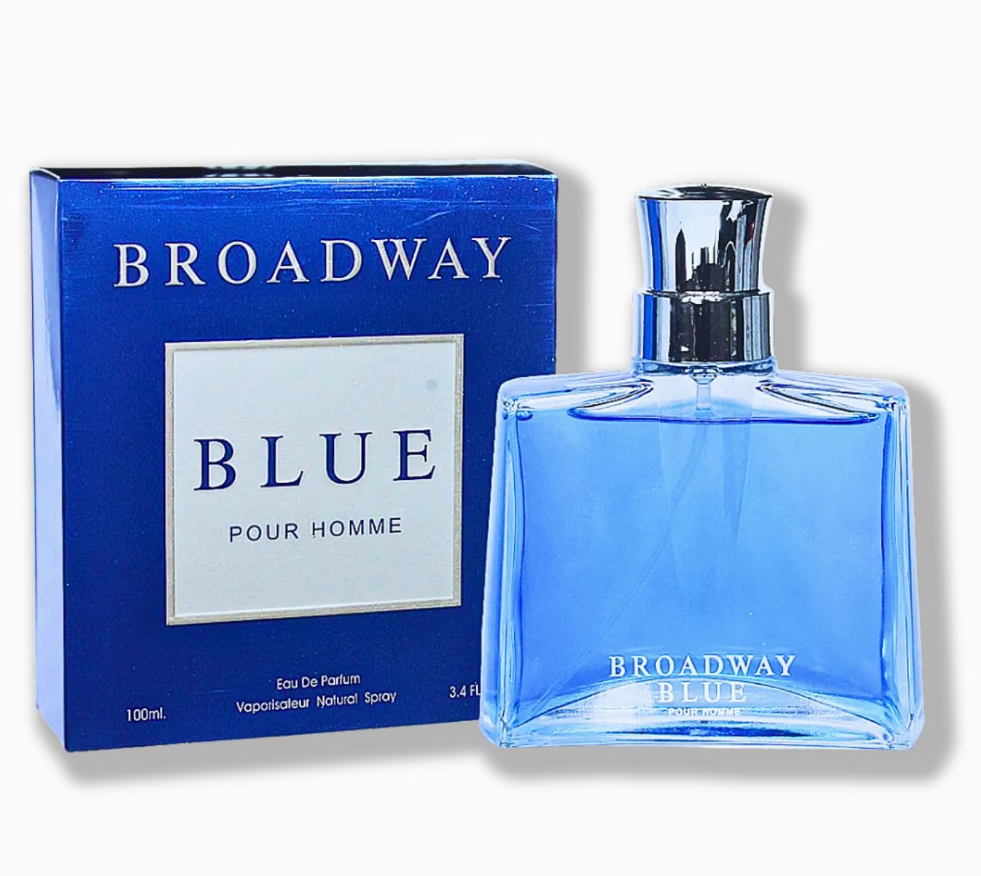 BROADWAY BLUE POUR HOMME EAU DE PARFUM is a Woody Spicy fragrance for men. Top notes are Cardamom and Sandalwood; middle notes are Ginger, Juniper and Galanga; base notes are Tobacco Blossom, Green Leaves and Teak Wood. Attractive and seductive, this masculine Eau de Toilette was built on contrasts that blend together in a perfect harmony.BROADWAY BLUE POUR HOMME EAU DE PARFUM is a Woody Spicy fragrance for men. Top notes are Cardamom and Sandalwood; middle notes are Ginger, Juniper and Galanga; base notes are Tobacco Blossom, Green Leaves and Teak Wood. Attractive and seductive, this masculine Eau de Toilette was built on contrasts that blend together in a perfect harmony. BROADWAY BLUE POUR HOMME EAU DE PARFUM designer cologne is an alternative fragrance and is in no way affiliated with the mentioned brand name. All product and company names are trademarks or registered trademarks of their respective holders. Use of them does not imply any affiliation with or endorsement by them. Fragrances are less expensive versions of the genuine/original brand owned by their rightful owners. Impression (version/inspired) fragrances are in no way connected with the trademark or trademark owners mentioned on the packagin. Whether you opt for the enduring elegance of perfume or the refreshing vivacity of cologne, these fragrant masterpieces are designed to accentuate your personality and make an unforgettable impression. Share your pleasure with someone else and treat that special person. It is the perfect gift for Father's Day, Valentine's Day, Christmas, a Birthday, Anniversary, Graduation, Business Gifts, any Holiday, or just as a gift to yourself. In order to get the most out of a fragrance and for its scent to be fully revealed, it is necessary to apply it in appropriate places, in the areas where the blood circulation is most superficial. Therefore, put a drop of perfume on the inside of the wrist, on the nape of the neck, in the crook of the elbows and knees, on the temples, at the base of the neck and chest. Spray a little under the earlobes and not behind the ears as is often believed, as the epidermis, especially oily in this place, tends to distort the aroma.