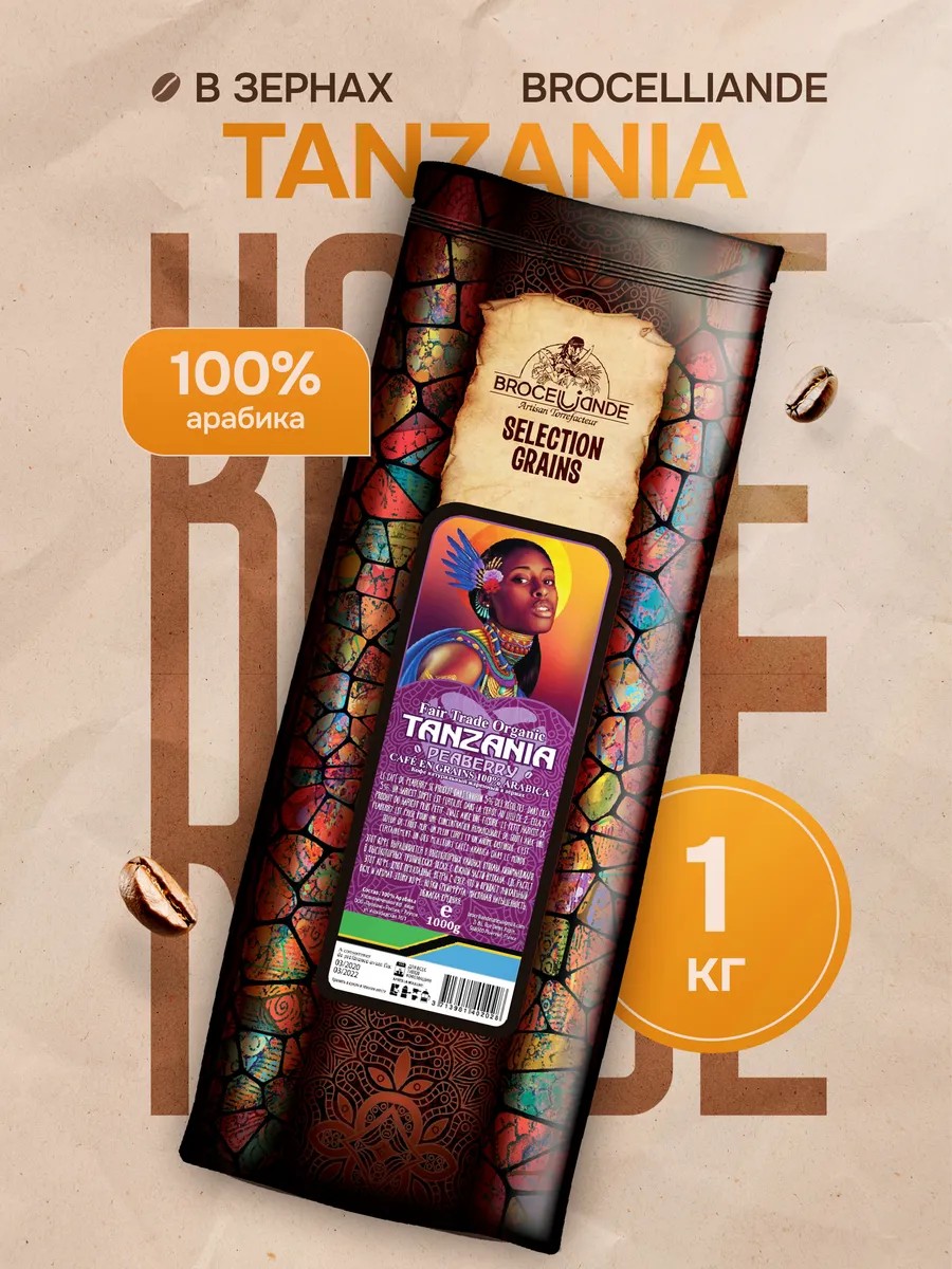 Зерновой кофе Brocelliande Tanzania 100% Арабика - это изысканный сорт, выращенный на плантациях в Танзании. Он отличается особым вкусом и ароматом, который делает его одним из самых популярных в мире.