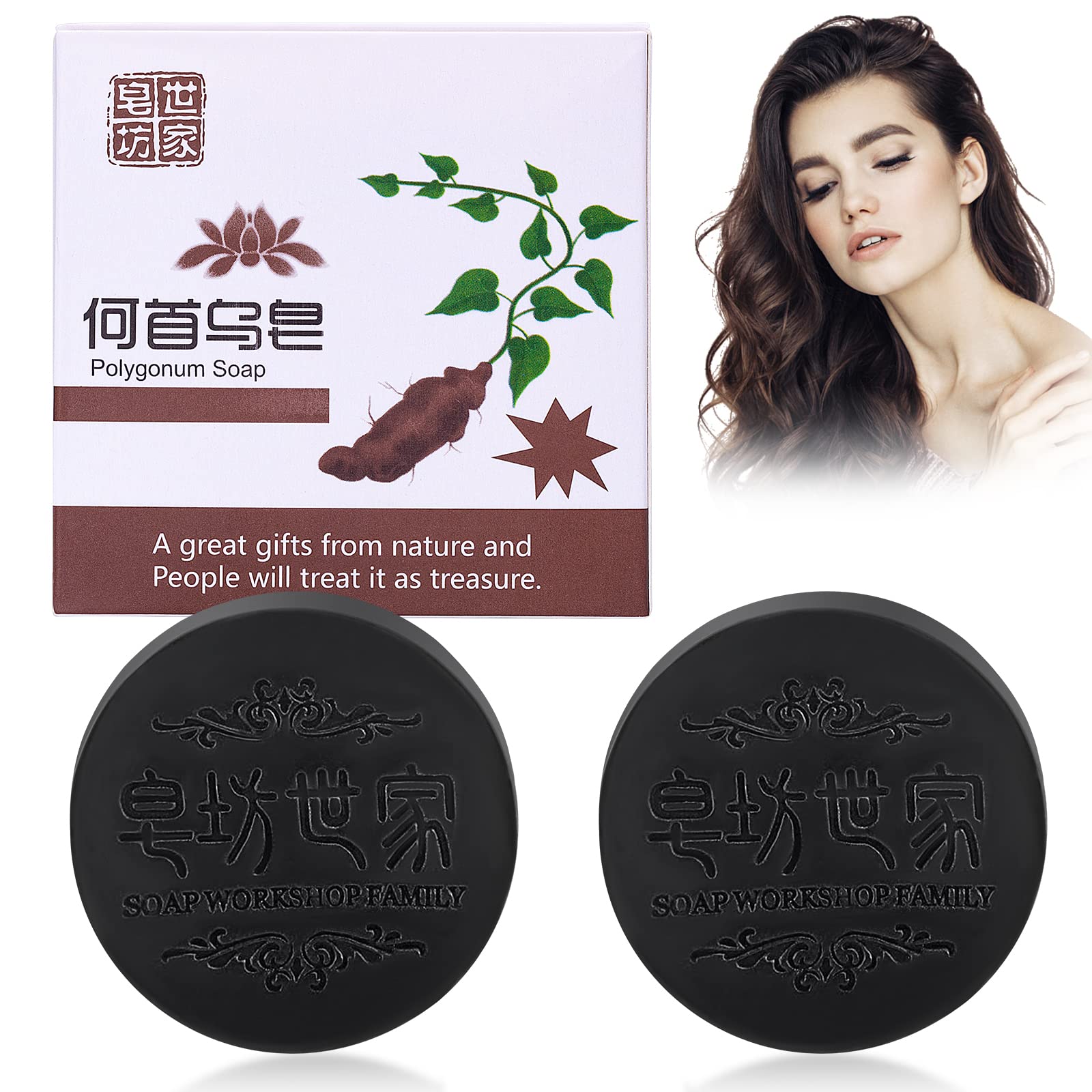 BROEYOUE Pack of 2 Polygonum Multiflorum Shampoo Soap Natural Polygonum Hair Soap He Shou Wu Shampoo Soap Promotes hair growth and prevents hair loss