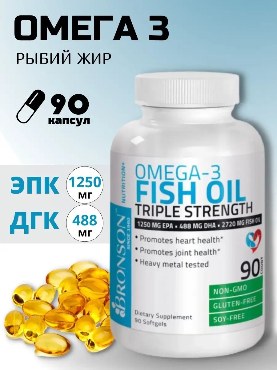 | Комплектация | Рыбий жир Fish Oil Omega 3 Bronson 90 капсул - 1 банка |