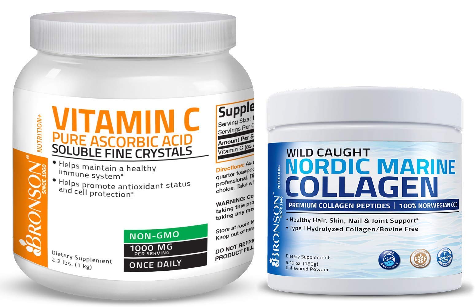 Bronson Marine Collagen Peptides Hydrolyzed Protein Powder 100 Wild Caught Nordic Cod Bronson Vitamin C Powder Pure Ascorbic Acid Soluble Fine Non GMO Crystals