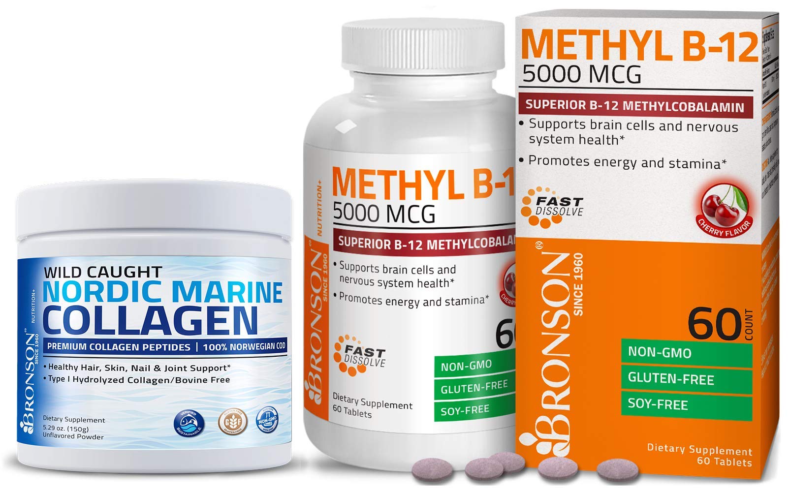Trusted Since 1960: The pioneers of Bronson Vitamins were a group of pharmacists who witnessed the benefits of vitamins and mineral supplementation firsthand with their patients. Bronson Vitamins have been consistently mentioned by top medical professionals since our inception in 1960. Bioavailable Vitamin B: By using Methylcobalamin, Bronson's fast dissolve formula provides the most biologically active form of B-12 for superior fast-acting support. Hair, Skin, Nail Joint Support: Type 1 Hydrolyzed Marine Collagen to support healthy hair, skin, nails and joints. Type 1 collagen is the most common type of collagen and the most abundant in humans. Packed with amino acids to help maintain healthy skin and stimulate the production of collagen within the body. . Wild Nordic Marine Collagen: 100 Norwegian Cod from the fresh cold waters of the North Atlantic. Superior quality bioavailable protein for easy digestion. Our premium marine collagen avoids any GMOs or harmful farmed fish that is commonly treated with hormones and antibiotics.