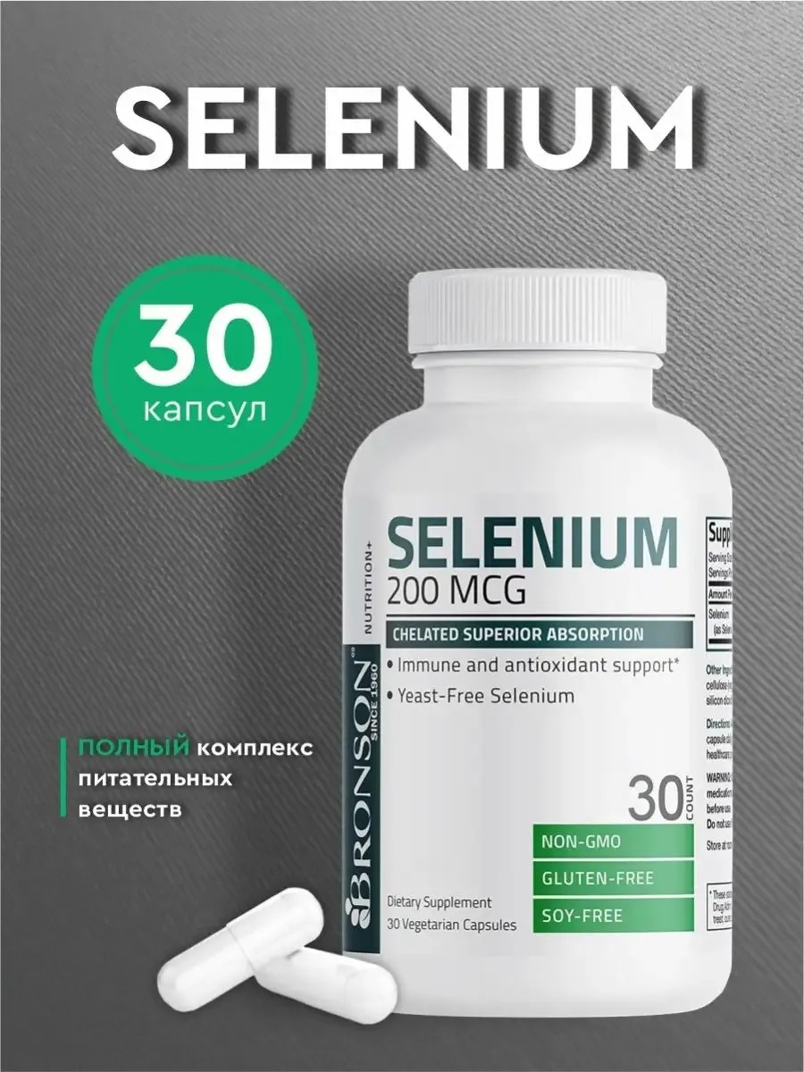 Витамины для женщин и мужчин Бронсон Селениум направлены на поддержку иммунной системы, щитовидной железы, сердца и обмена веществ: селен естественным образом поддерживает иммунную систему, здоровую щитовидную железу, простату и работу сердца.Селен в хелатной форме с превосходной абсорбцией: Благодаря использованию первоклассного производителя хелатных минералов (Albion), Bronson's Selenium 200 MCG обеспечивает легкое всасывание, стабильность и общее качество. Не содержащий дрожжей комплекс незаменимых микроэлементов и аминокислот селена является естественным микроэлементом, который может играть жизненно важную роль во многих основных функциях организма.Лабораторно протестировано, без ГМО, без глютена, без сои. Рекомендовано принимать по 1 таблетке 1–2 раза в день во время еды.