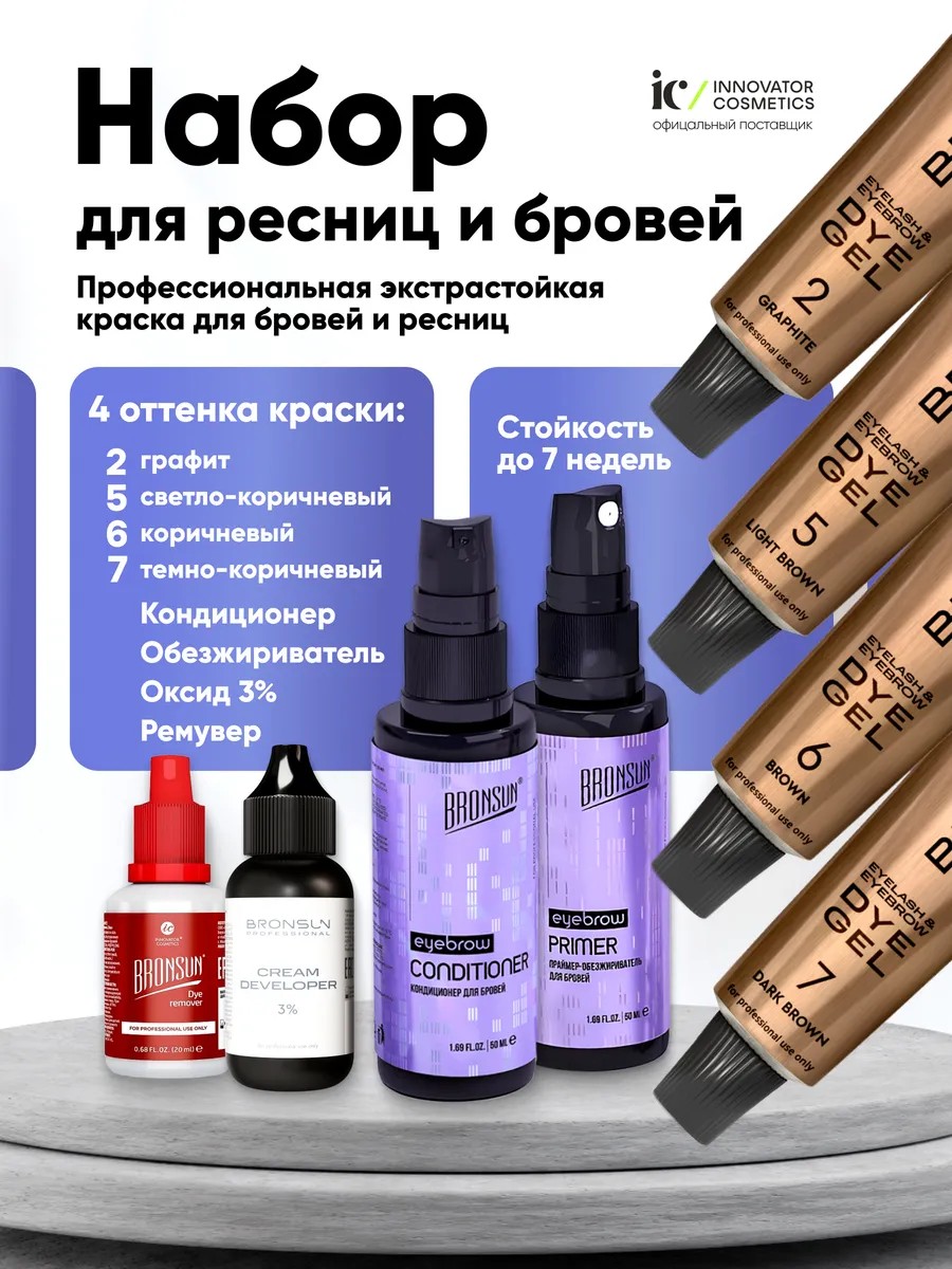 Набор красок для бровей и ресниц Bronsun (бронсан) от INNOVATOR COSMETICS (Иноватор косметикс) – 4 цвета + 5 подарков!