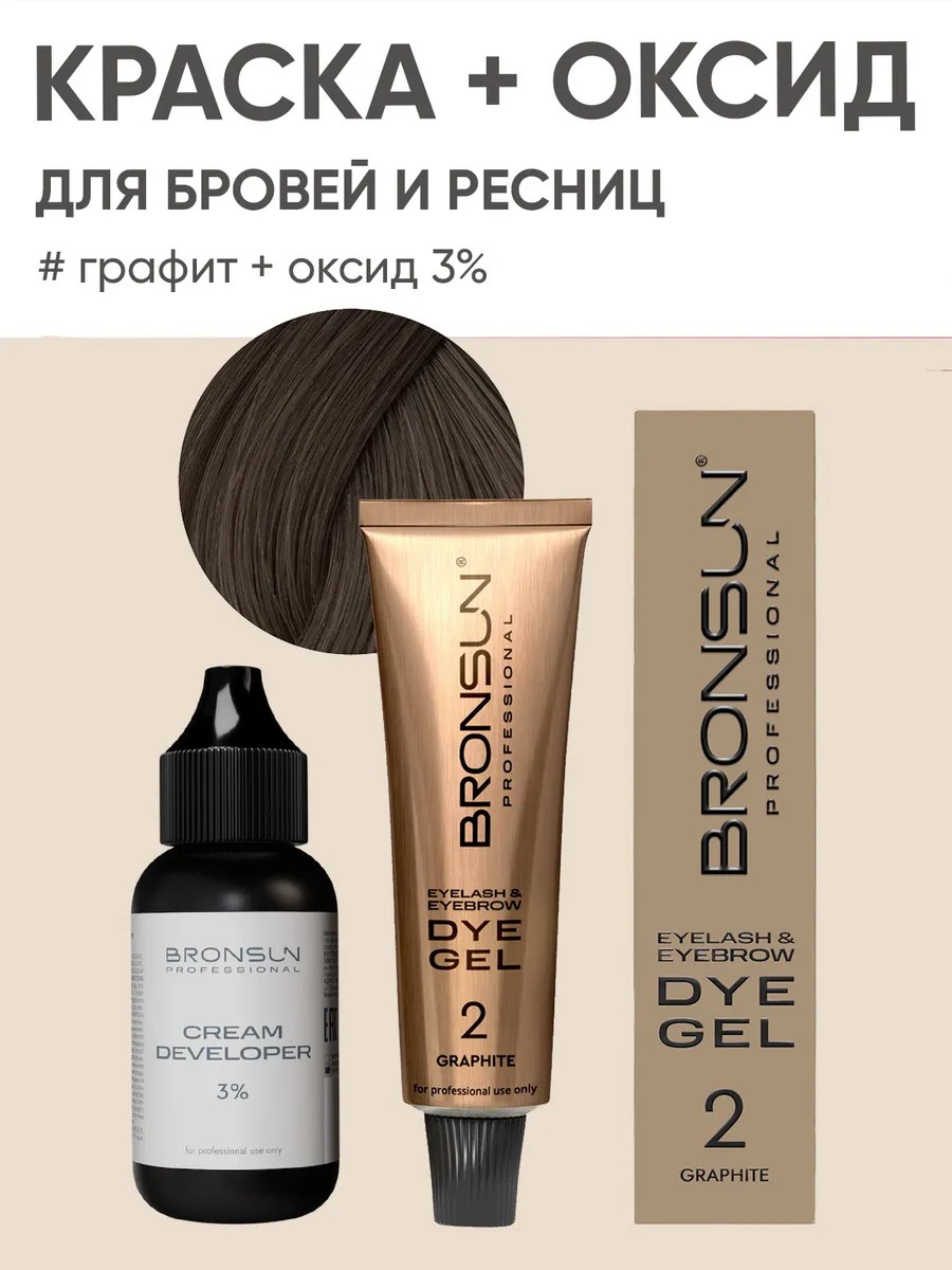 Набор гель-краска для бровей и ресниц бронсан 2 графит 15 мл + оксид бронсан 3%.
