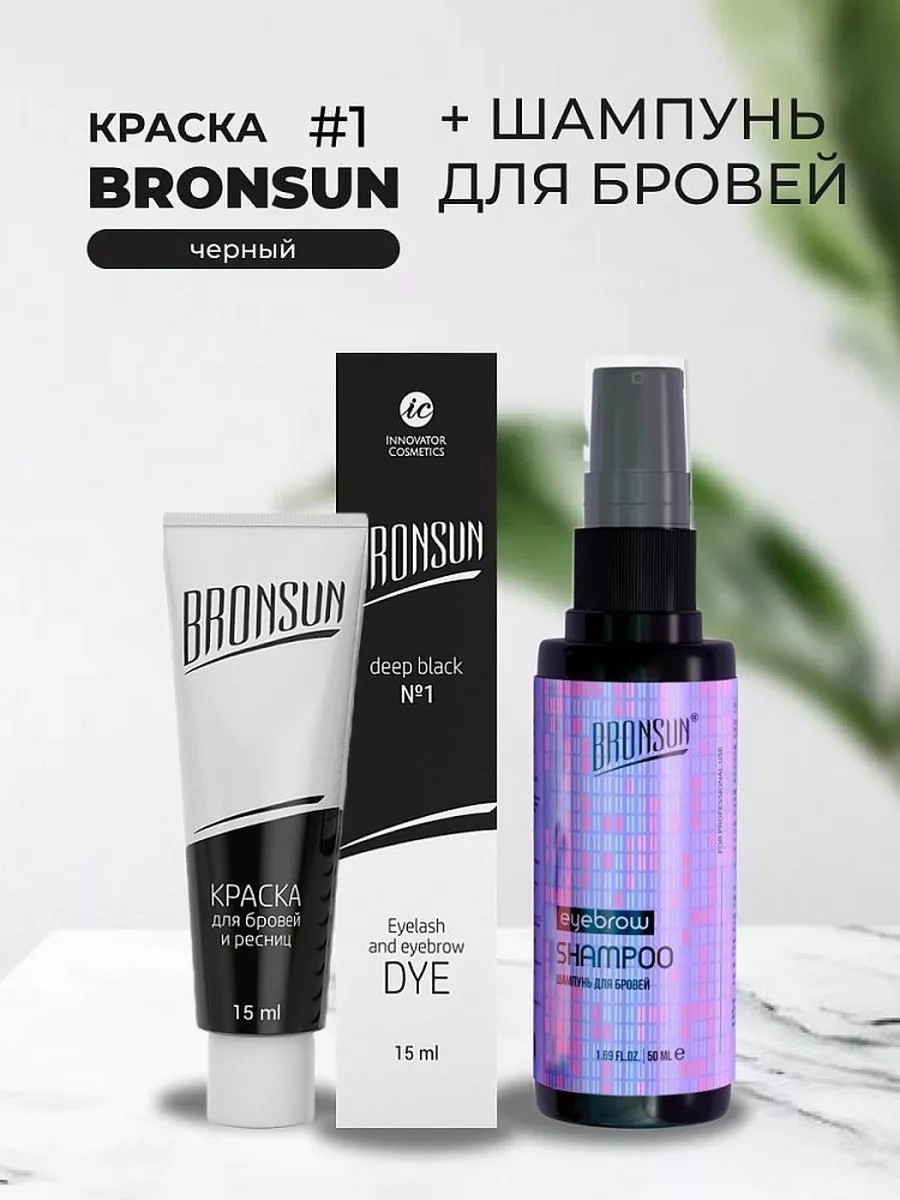Bronsun Набор Краска, цвет черный #1 и Шампунь для бровей NEW