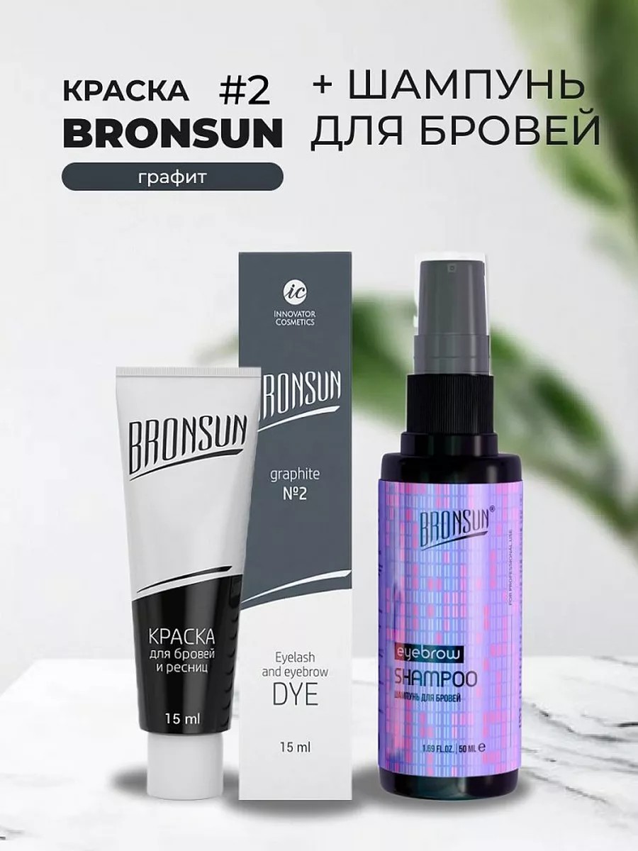 Bronsun Набор Краска (цвет графит #2) и Шампунь для бровей NEW
