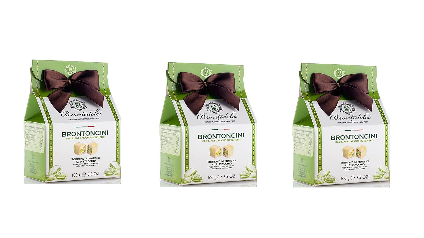 Brontedolci Brontedolci Brontoncini Torroncini Morbidi al Pistacchio Soft nougat covered with pistachio and white chocolate 100 g
