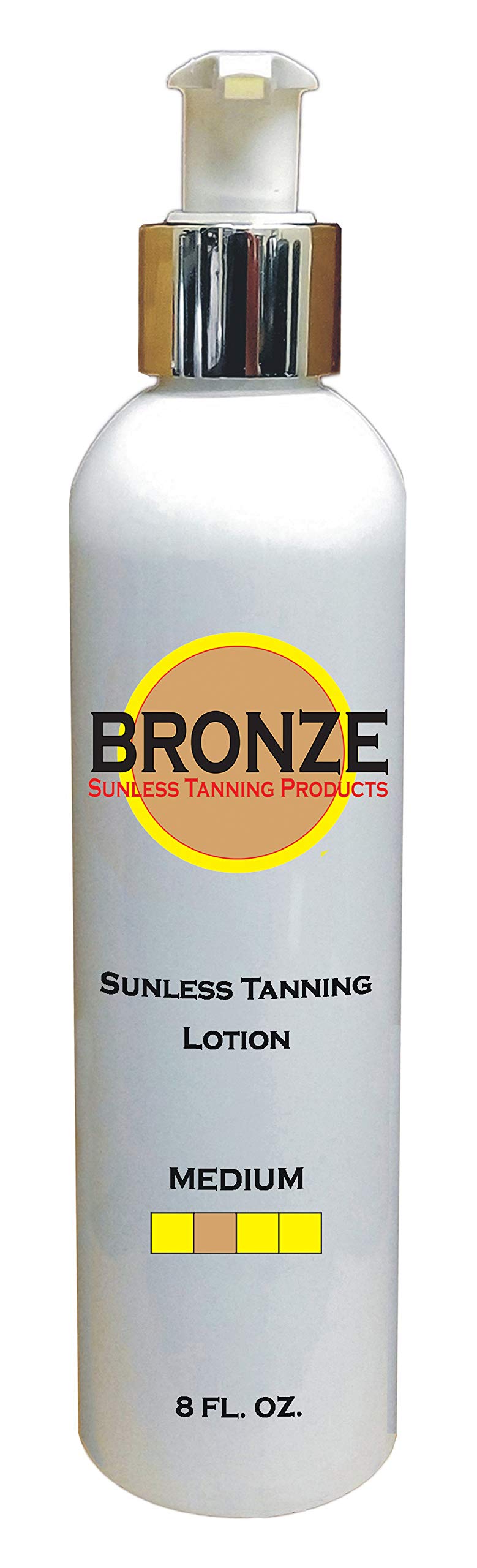 BRONZE Sunless Self Tanning Lotion Medium - 8 oz. BRONZE has searched the world to create the Best Sunless Self Tanning Lotion on Earth! By using only the finest and most luxurious ingredients in the world, this incredible sunless self tanning lotion will instantly give you the Most Natural Looking, Darkest, Longest Lasting and Best Sunless Self Tan you have ever experienced! This wonderful blend of natural ingredients also moisturizes and protects your skin, helping you look eternally Beautiful. The Worlds Best Sunless Self Tanner! Natural And Luxurious Ingredients Beautiful, Dark, Golden Brown Color Tans Instantly Quick Drying Sunless Tan Will Last Up To 10 Days Tan Will Not Rub Off On Clothing Smells Delicious Animal Cruelty Free Sunless Self Tanning Application Mitt Gloves Included