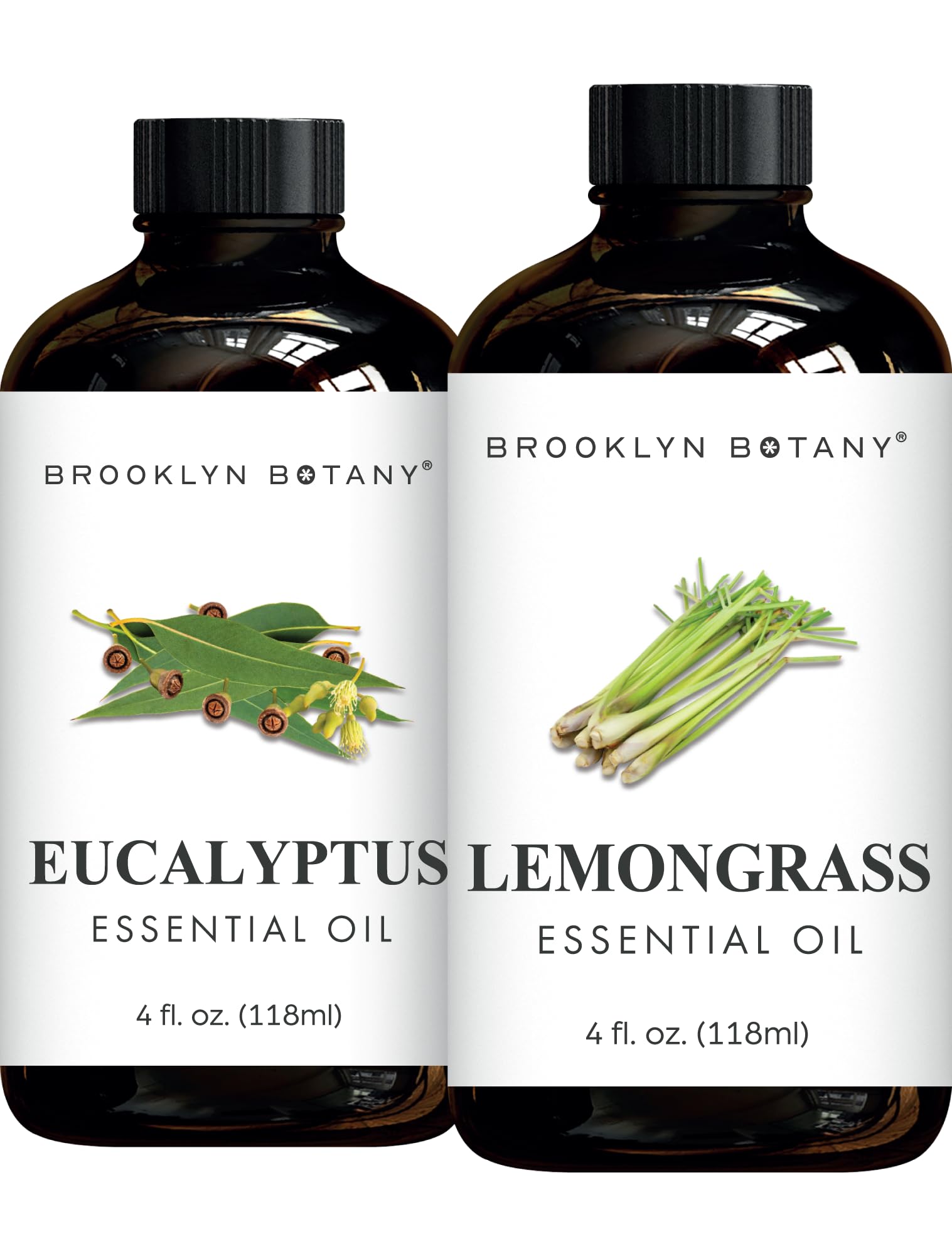Brooklyn Botany Eucalyptus & Lemongrass Essential Oils 4 Fl Oz (Pack of 2) 100% Pure & Natural Refreshing & Clarifying Aromatherapy Blend