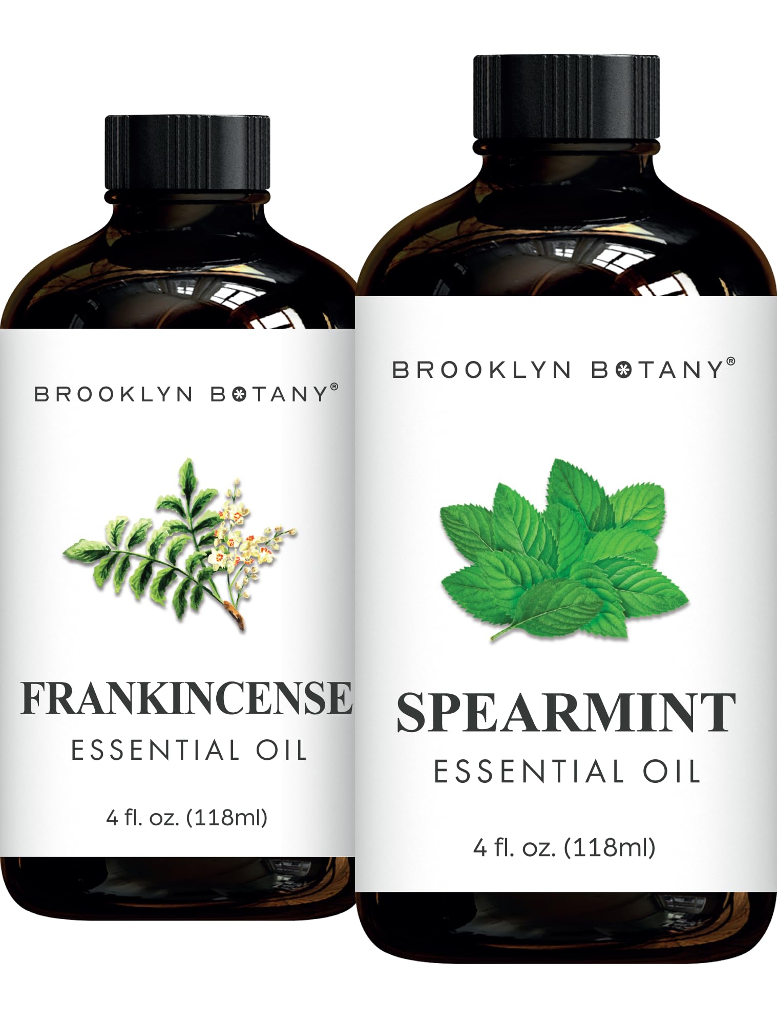 Brooklyn Botany Frankincense & Spearmint Essential Oils 4 Fl Oz (Pack of 2) 100% Pure & Natural Cool & Grounding Aromatherapy Blend