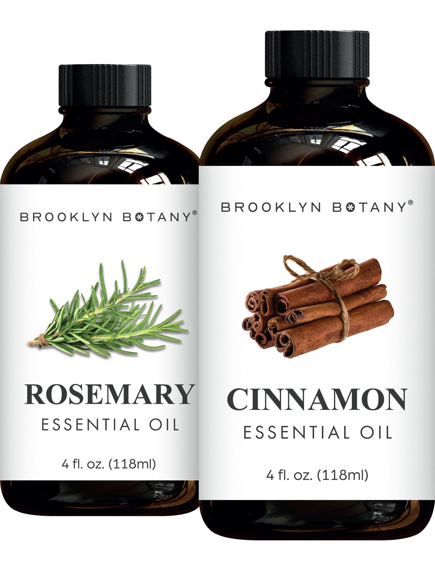 SAVE ON BUNDLES – Enjoy better value with our exclusive 2-pack aromatherapy sets compared to buying individual oils. VERSATILE AROMATHERAPY BLEND – Perfect for diffusers, baths, and diluted skin application. Combines well with oils such as Clove, Tea Tree, and Eucalyptus. SAFE AND CONVENIENT PACKAGING – Bottled in amber glass with a dropper for easy, precise use, protecting oils from UV damage. PREMIUM GRADE ESSENTIAL OILS – Independently lab-tested to ensure potency and quality, ideal for aromatherapy and diluted topical use. 100 PURE AND NATURAL ESSENTIAL OILS – Brooklyn Botany Rosemary and Cinnamon oils are undiluted and free from additives to provide maximum natural benefits.