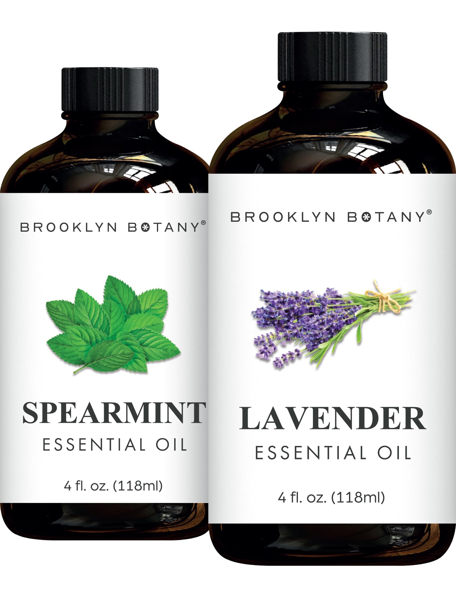 Brooklyn Botany Spearmint & Lavender Essential Oils 4 Fl Oz (Pack of 2) 100% Pure & Natural Calming & Fresh Aromatherapy Blend