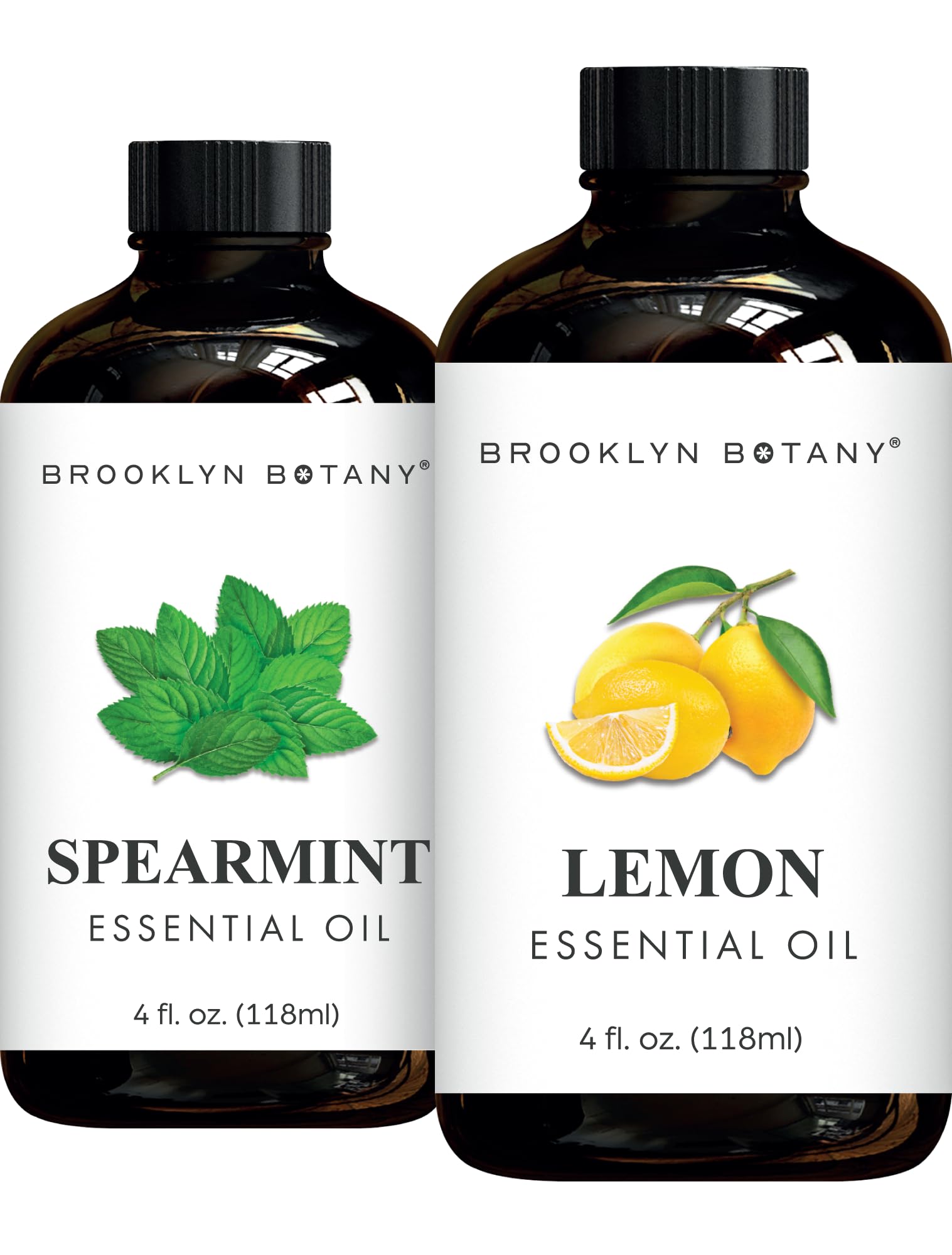 Brooklyn Botany Spearmint & Lemon Essential Oils 4 Fl Oz (Pack of 2) 100% Pure & Natural Invigorating & Energizing Aromatherapy Blend
