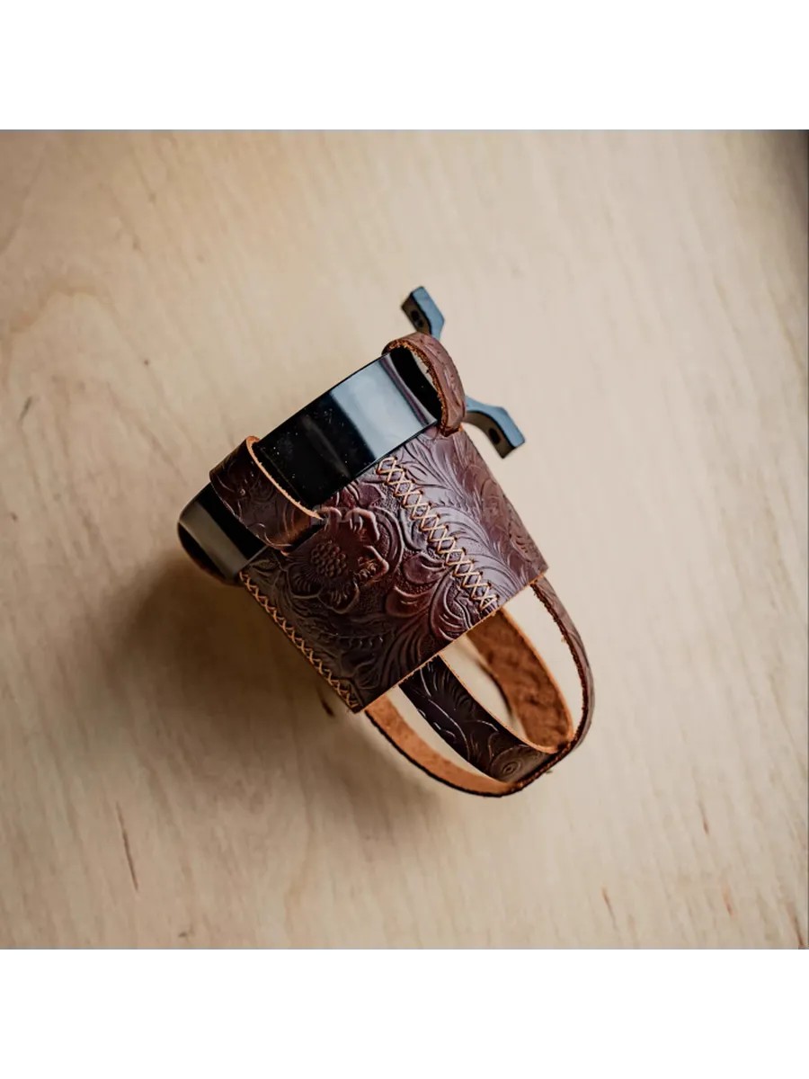 Motorcycle Retro Cup Holder (Brown Cowhide Tan Grass Glossy)