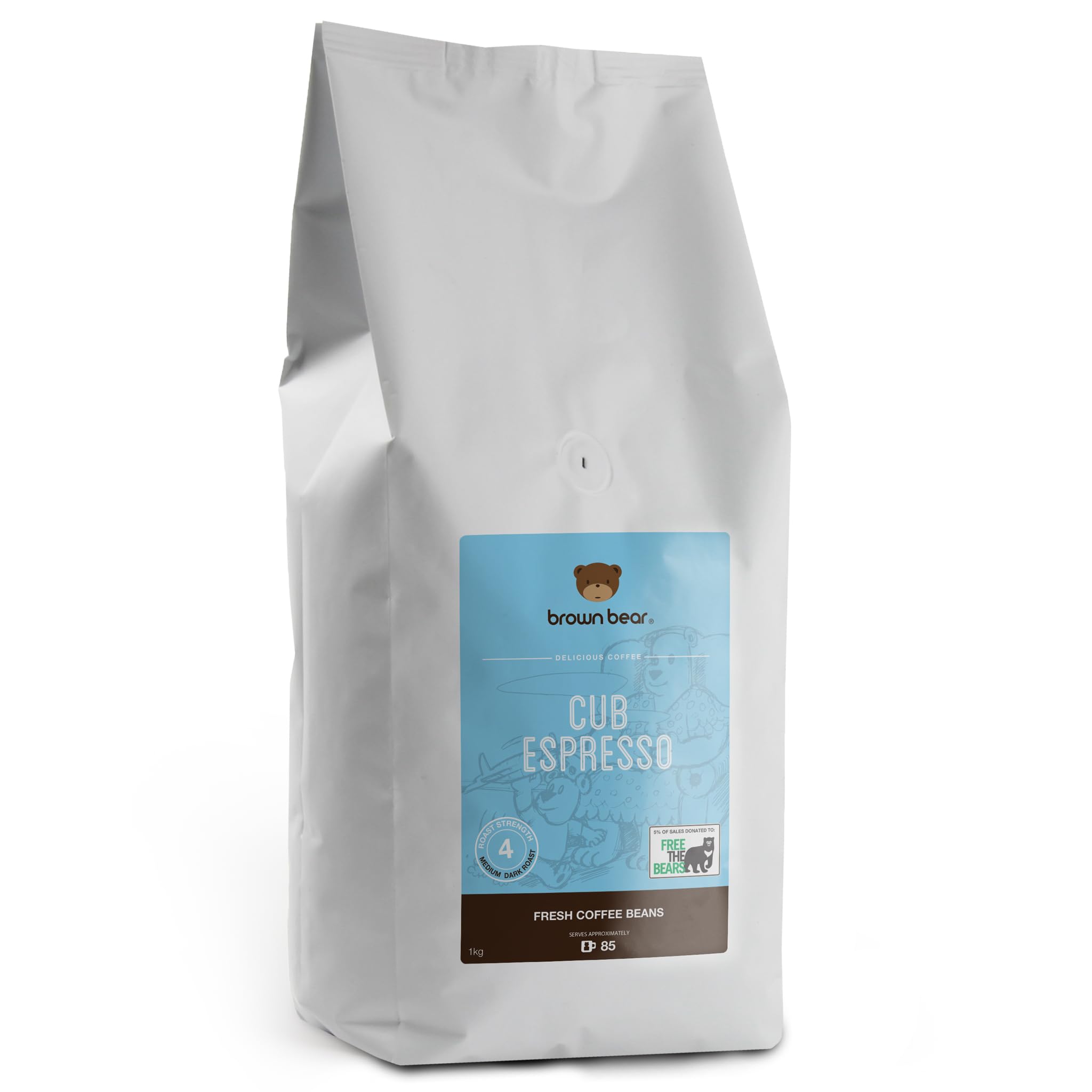 Brown Bear Brown Bear Coffee Cub Espresso Coffee Beans Medium Roast 1 kg Medium Dark Roast Coffee Beans 5% of sales donated to the Free the Bears Association