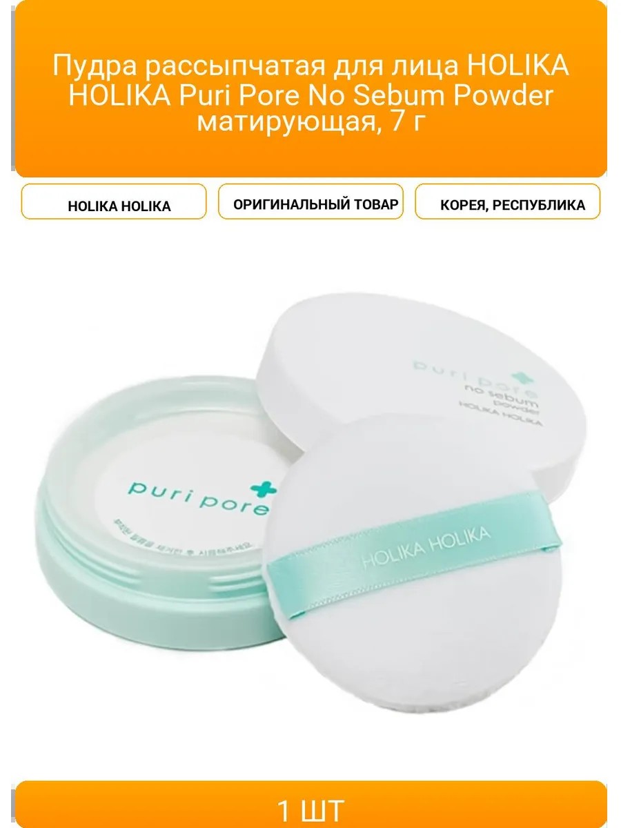 | Комплектация | Пудра рассыпчатая для лица HOLIKA HOLIKA Puri Pore No Sebum Powder матирующая |