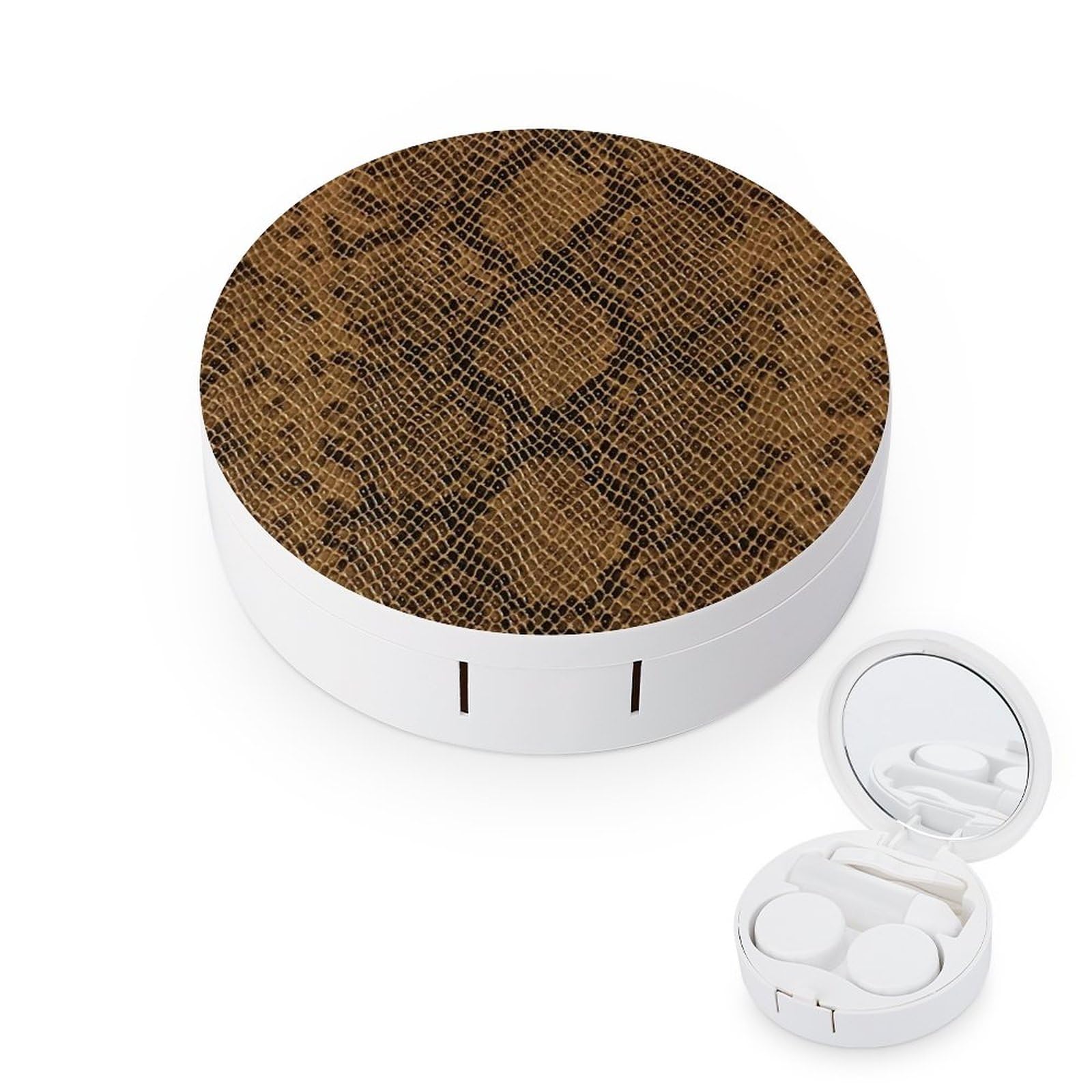 Brown Snake Skin Pattern Contact Lens Case Travel Portable Travel Contact Lens Box with Mirror